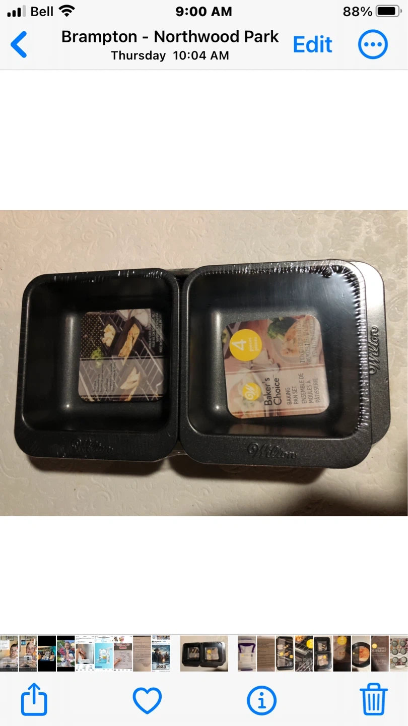 This is a Wilton Baker's Choice baking pan set. It's a 4-cup square pan set. Pan dimensions are 2 in x 2 in (5 cm x 5 cm).