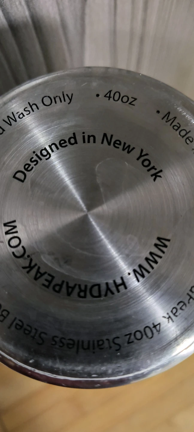This is a HydraPeak 40oz stainless steel water bottle. It's designed in New York. Hand wash only.