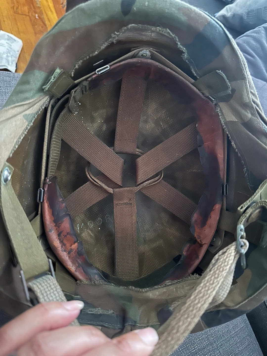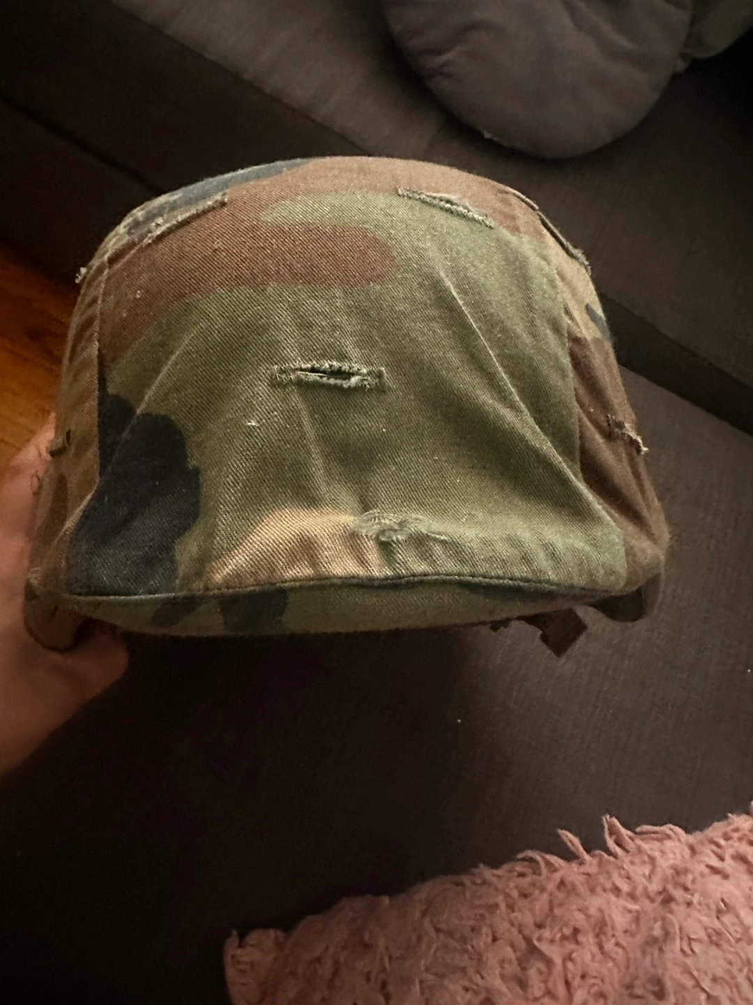 Selling a camouflage military helmet. It shows some signs of wear, but it's in overall good condition,Holds up US UNICOR ARMY PASGT used Helmet with strap with its Camo cover M-5 DLA100-85,Serious buyers,Pick up only,No shipping. Cash preferred.Open for offers.First come first served.