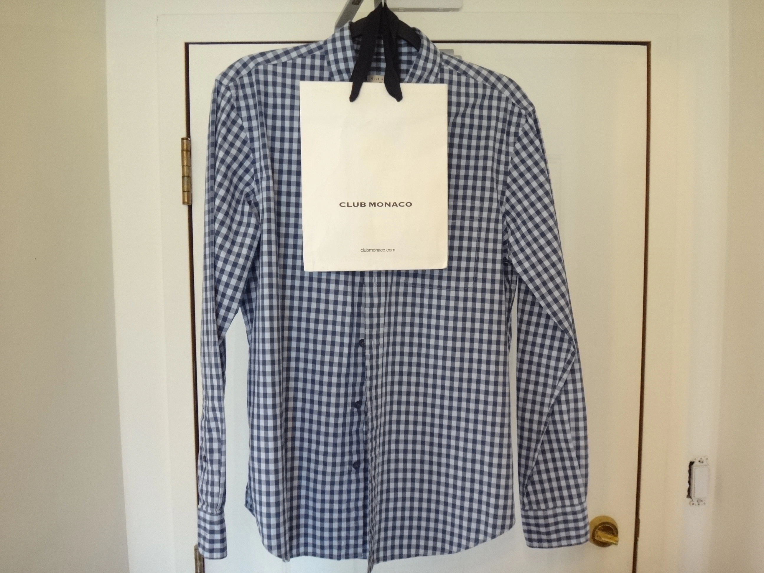 CLUB MONACO Men's Small Slim Fit Checkered Blue Shirt.