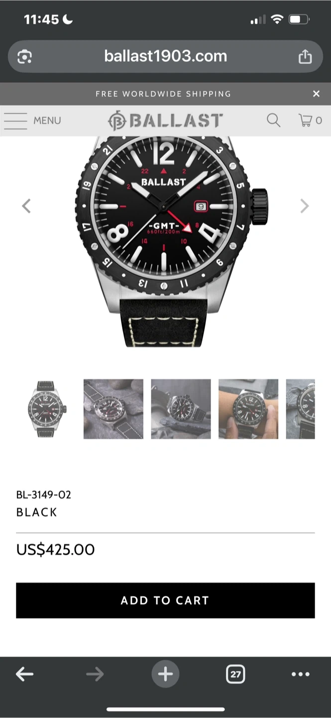 Selling a Ballast BL-3149-02 watch in black. It's in great condition and comes with the original box. Originally bought for $425. This stylish watch is ready for a new wrist!