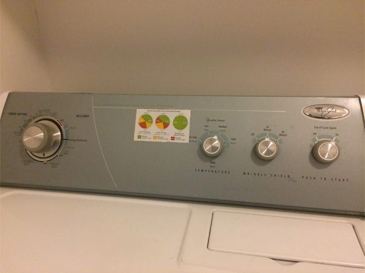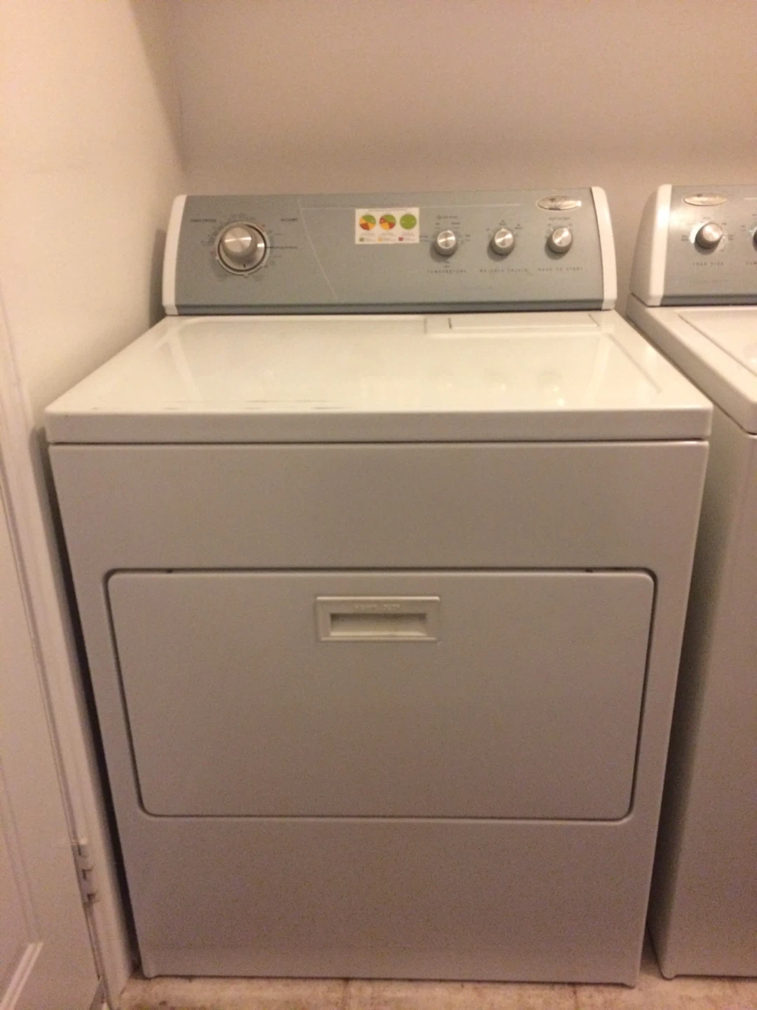 Selling a Whirlpool dryer, model number YLEN2000LWO. It's in good condition and ready to help with your laundry needs! Dimensions are approximately 43 3/8" (110 cm) height x 27 3/4" (70.5 cm) depth x 29" (73.66 cm) width.