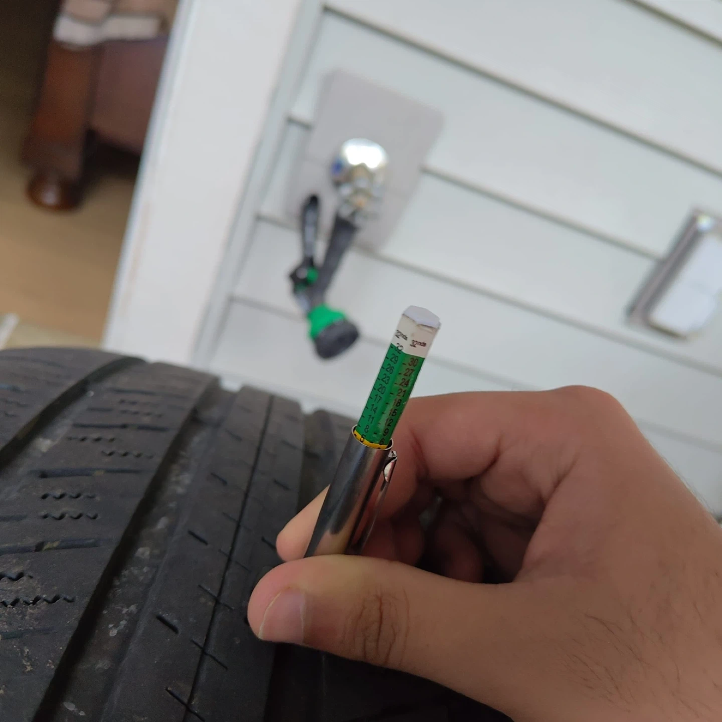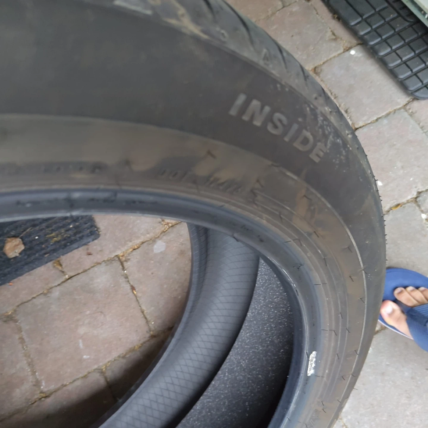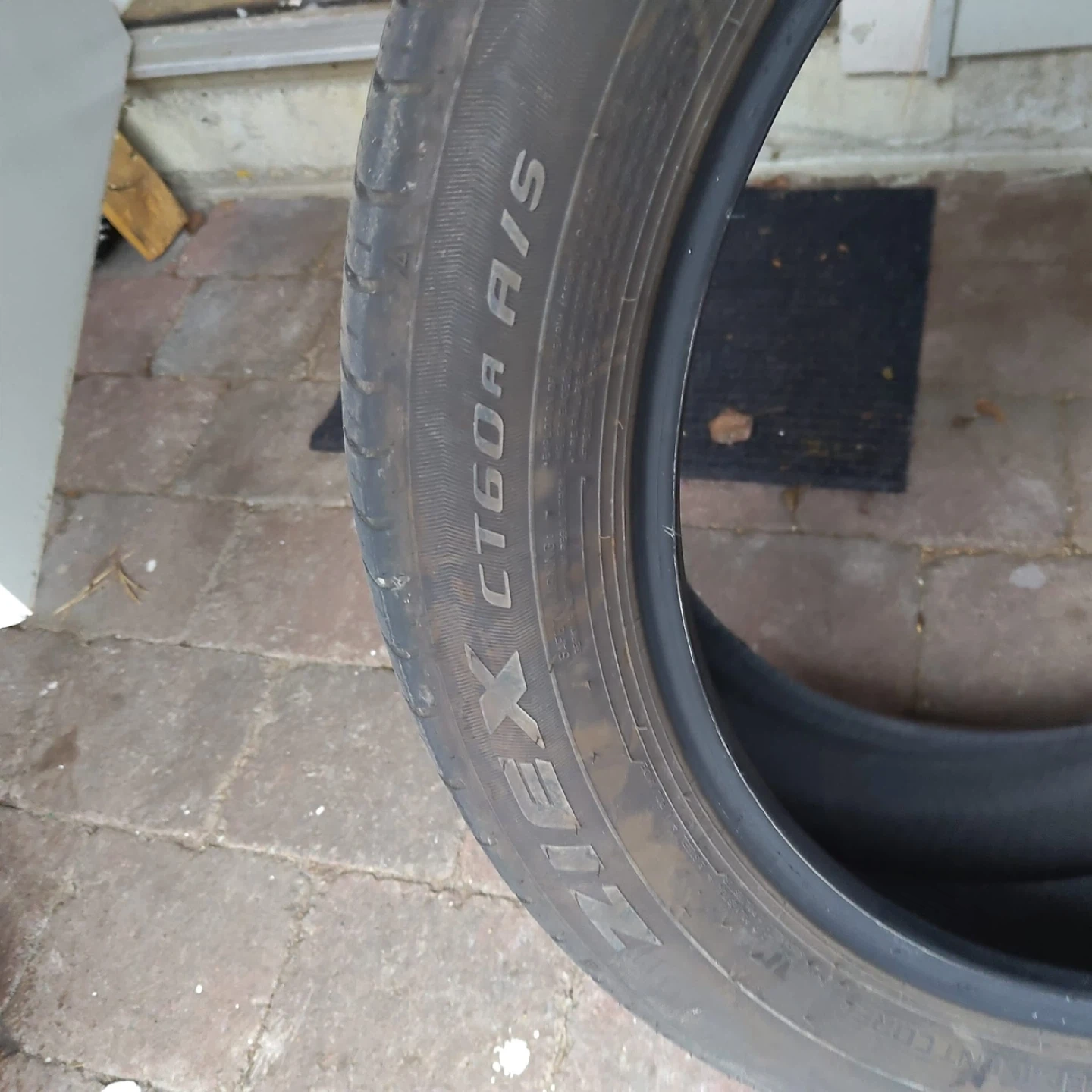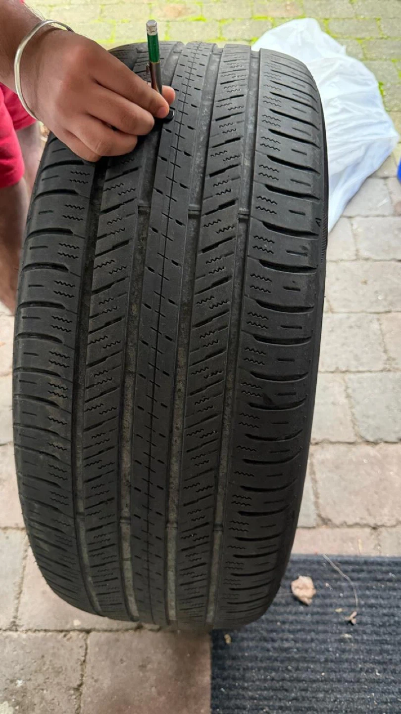 Falken CT60R A/S all-season tire. They are a full-size tire. The tread depth is approximately 8/32", as measured by the gauge shown. This would be useful for replacing a damaged spare or as a temporary replacement. Compatible with MazdaCX90 2025 model. You can even buy single if needed
