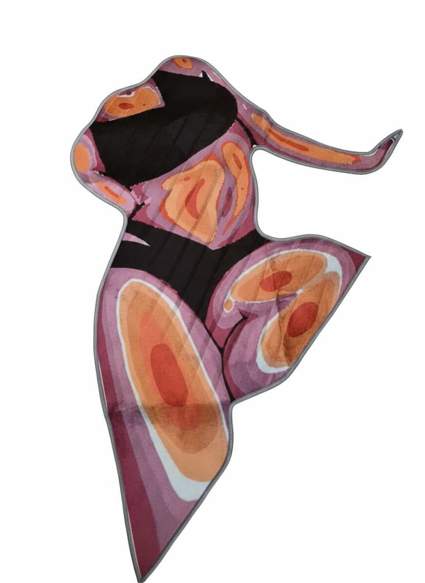 Make a statement in your space with this stunning abstract "heat map" style rug. Featuring a vibrant, thermal-inspired silhouette of the female form, this piece is the perfect blend of modern art and functional home decor.