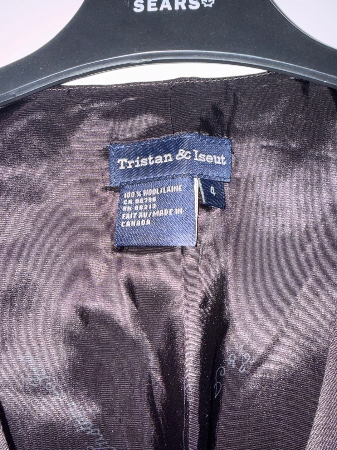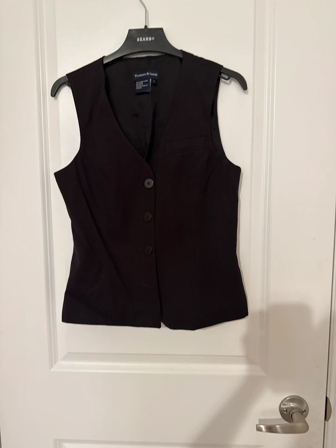Tristan & Iseut women's vest. It's made from 100% wool and manufactured in Canada. This vest is size 4.