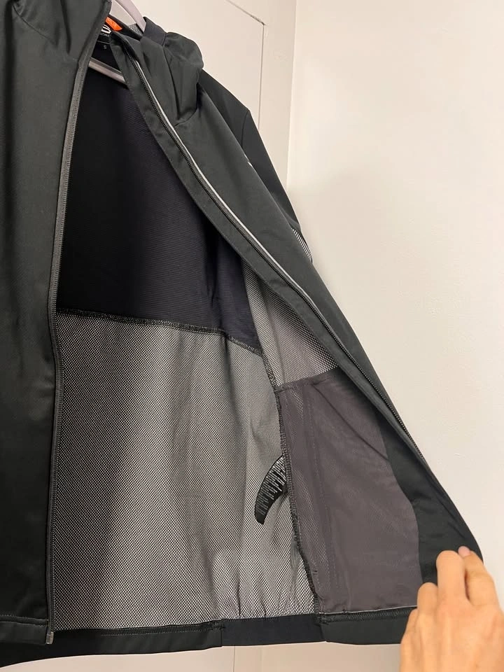 Composed of a lightweight water-repellent and wind-resistant 3-layer softshell material, this jacket is laminated with a TPU membrane, ensuring that light rain and sleet run off, giving you added protection during your sessions. To ensure optimal ventilation abilities, this membrane is not placed at the back, allowing optimal release of hot air from the heat zone at the back. Strategically placed elastic panels ensure full range of movement, and further enhances the maximal ventilation properties, allowing you to focus solely on your running performance. The articulated sleeves, and elastic cuffs ensure the optimal fit. Other features include YKK® zippers, a chin guard for protection, two zippered pockets, a fixed hood and reflective detailing on the logo for added visibility. This is the perfect choice for moderate to high intensity sessions when you need added protection. Water column: 10.000 WP, Breathability: 10.000 MVP.
