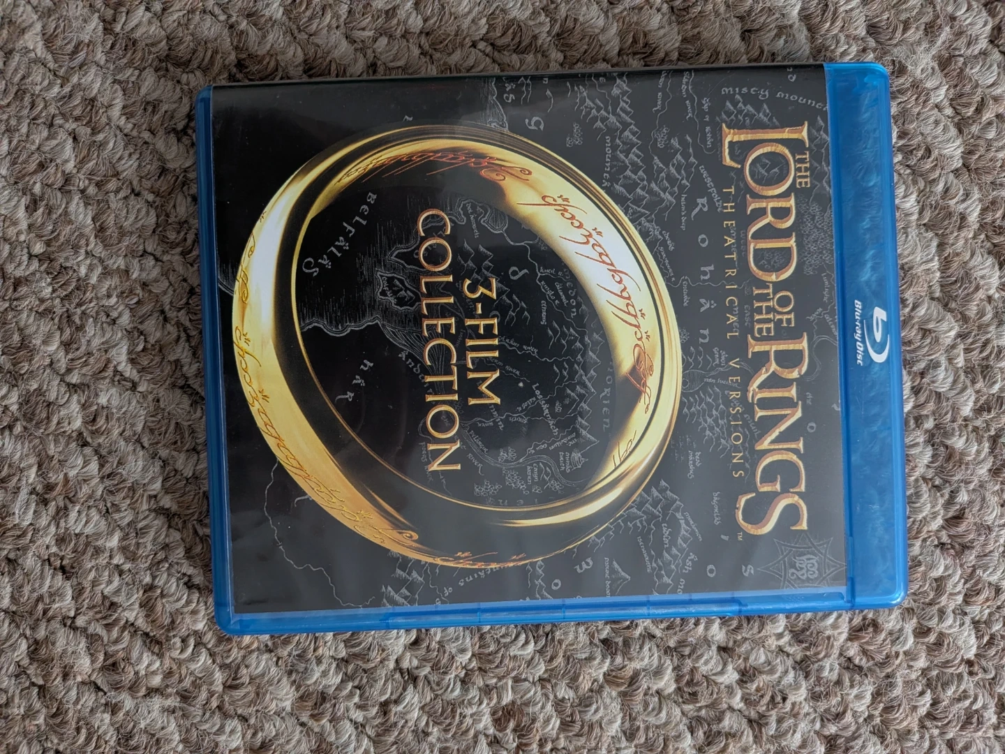 Blu-Ray copy of the Lord of the Rings 3-Film Collection! It includes the theatrical versions of: The Fellowship of the Ring, The Two Towers, and The Return of the King