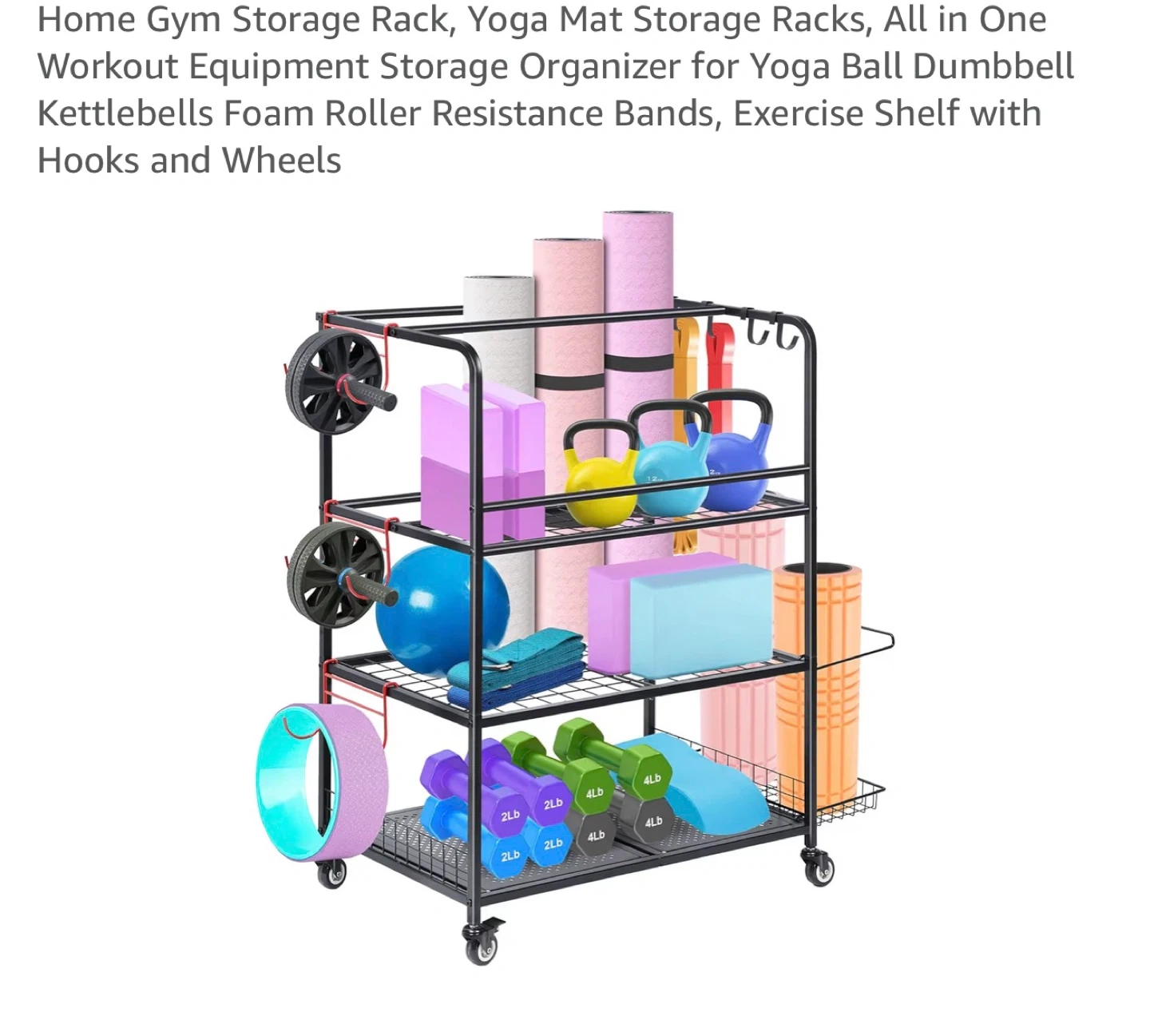 Home Gym Storage Rack for Yoga Mats, Dumbbells, and Kettlebells