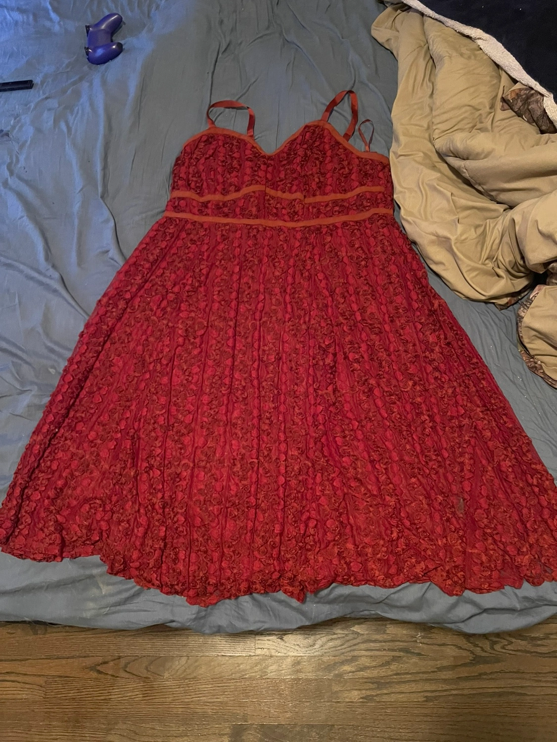 10I bought this awhile back, I only tried on. Originally bought for $207 at Torrid Size 22 Selling for $125 It’s a really nice dress. I liked the way it fit and made me look when I tried it on. I just don’t have any occasion for this. It would need a wash. It’s been sitting in my apartment. And It’s coming from a pet friendly home. Pick up and EMT preferred!:)
