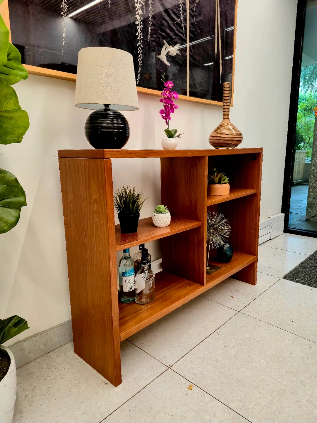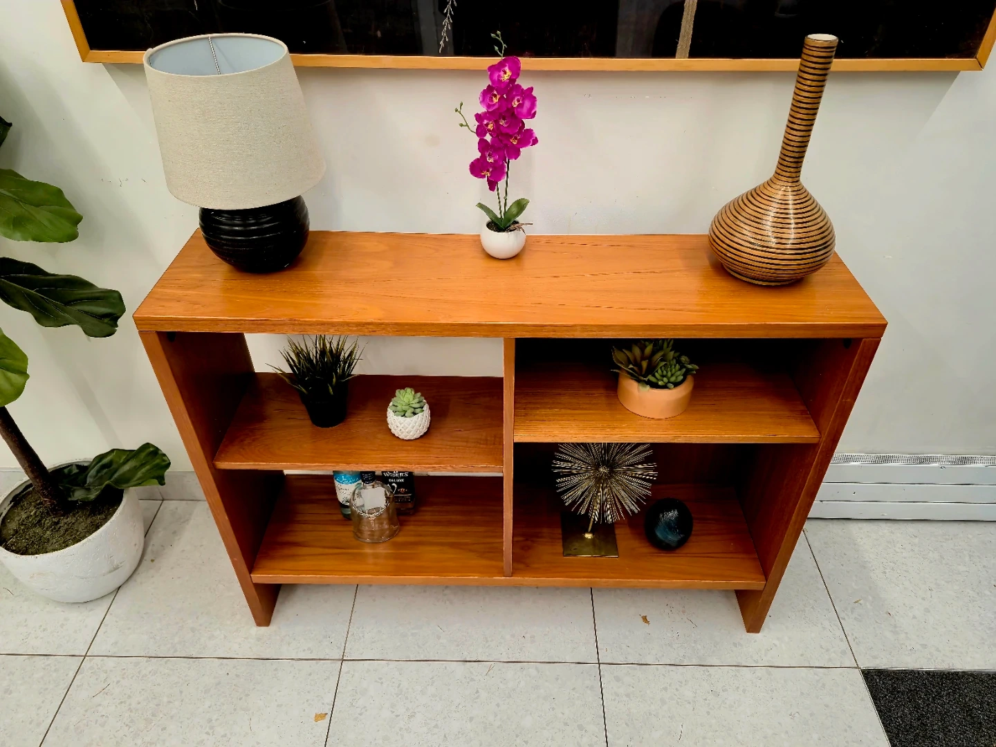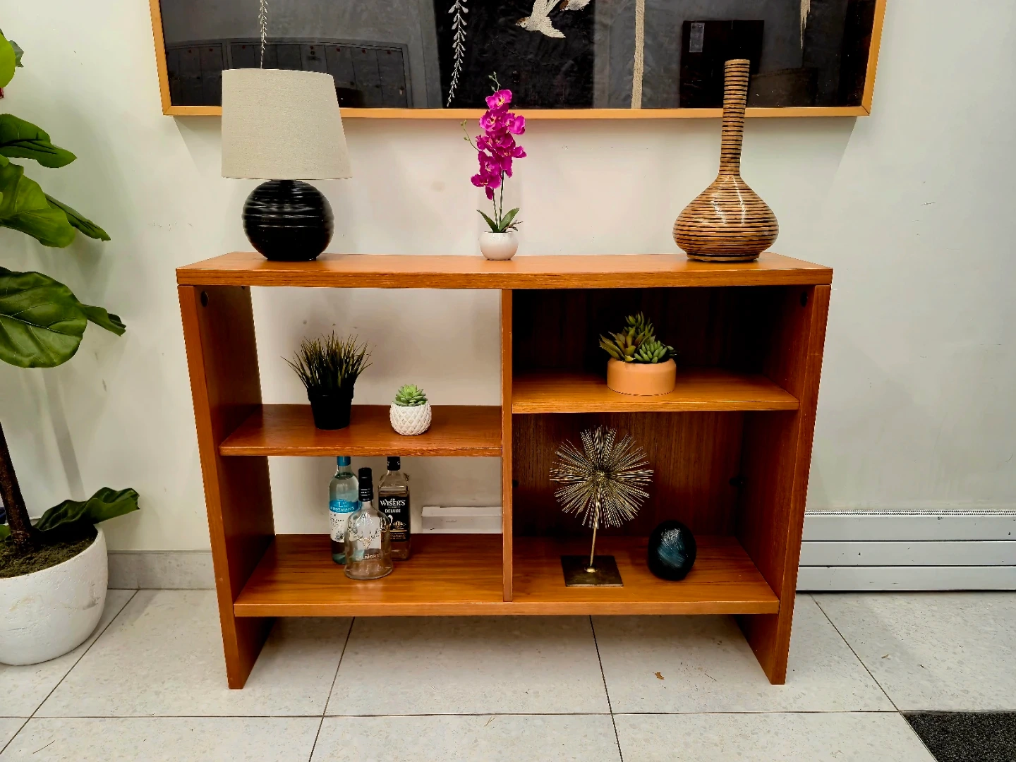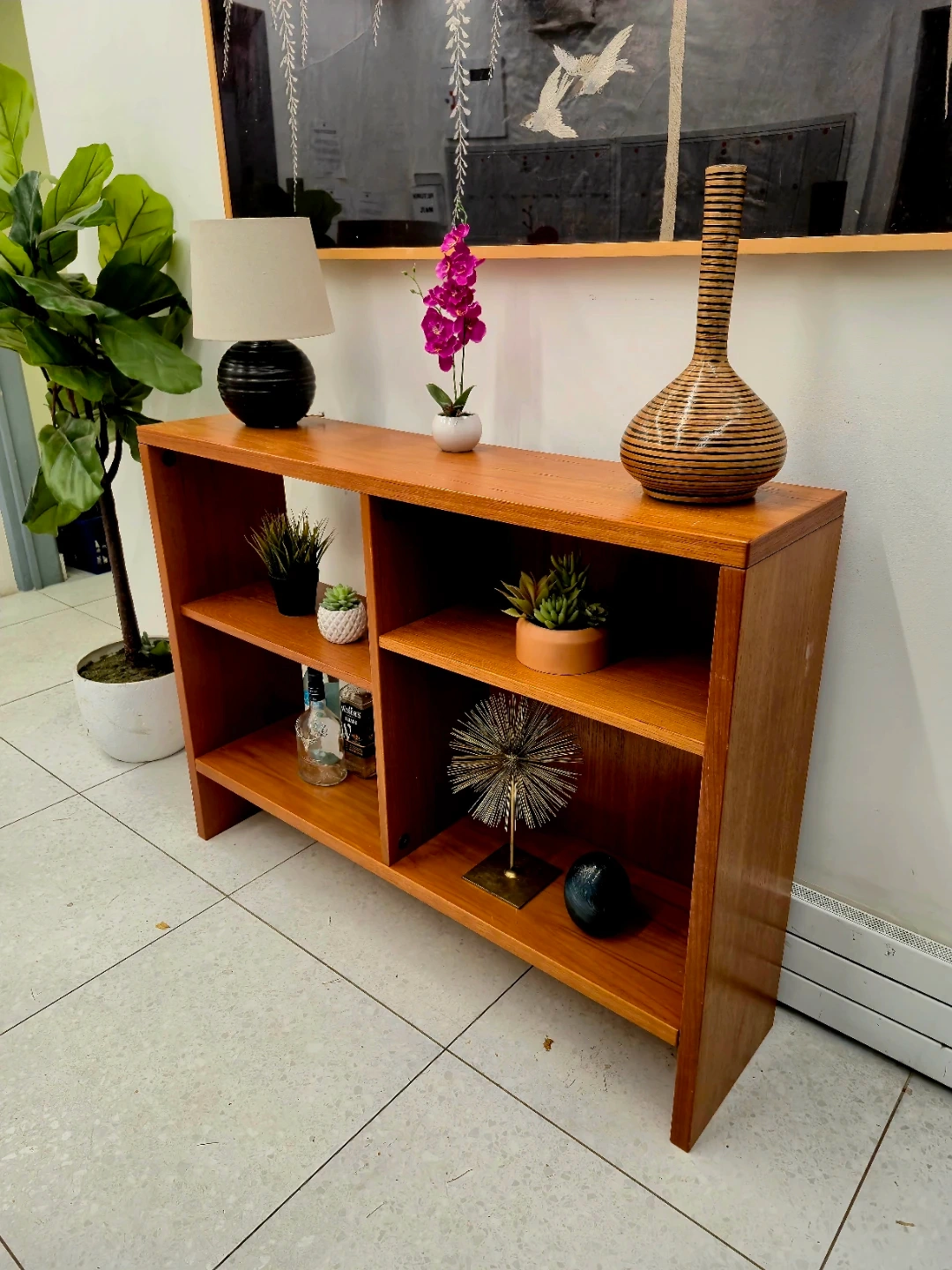 99Beautiful mid century teak cabinet with a warm, natural finish. Its clean lines and open shelving make it perfect for displaying books, plants, or decor — or even as a small bar. Sturdy, stylish, and in great condition with minimal wear. Shelves are adjustable. 48w x 12d x 36h Pick up in downtown Vancouver or delivery may be arranged for a reasonable fee. Priority is given to those who are able to pick up. Follow us on Instagram to enjoy an exclusive discount on select furniture items: https://www.instagram.com/vanvaluevintage Tags: mcm mid century modern retro vintage antique 1940s 1950s 1960s 1970s sixties teak walnut liquor cabinet shelf shelves shelving unit tv film set dec bookcase display cabinet buffet server sideboard Hutch credenza Scandinavian Danish Denmark Sweden Norway west elm pottery barn crate and barrel structube article cb2 eq3 scandesign