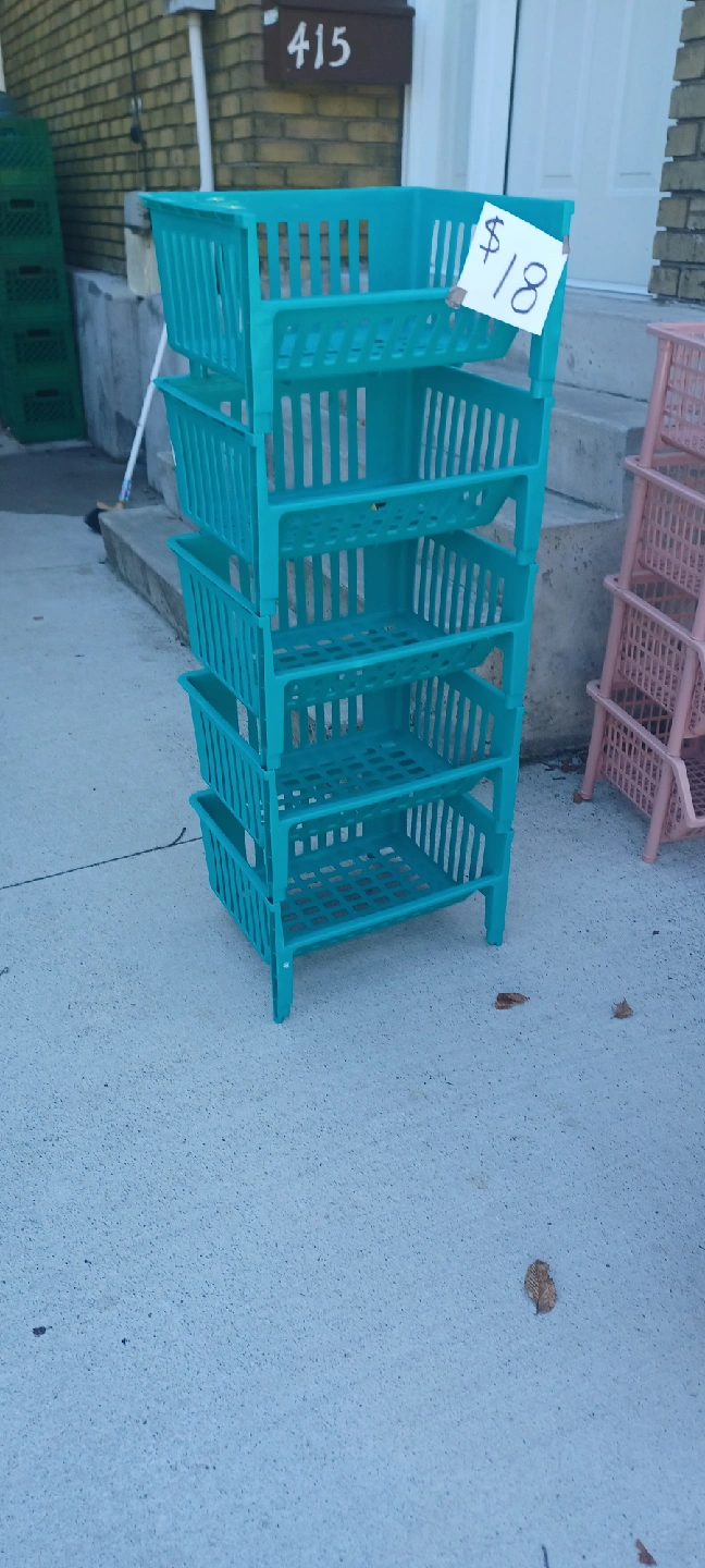 This teal plastic storage rack has 5 tiers and is perfect for organizing any space! It's sturdy and easy to move around.. PLEASE CALL NOT TEXT.... 519 729-5862 415 Victoria st south kitchener