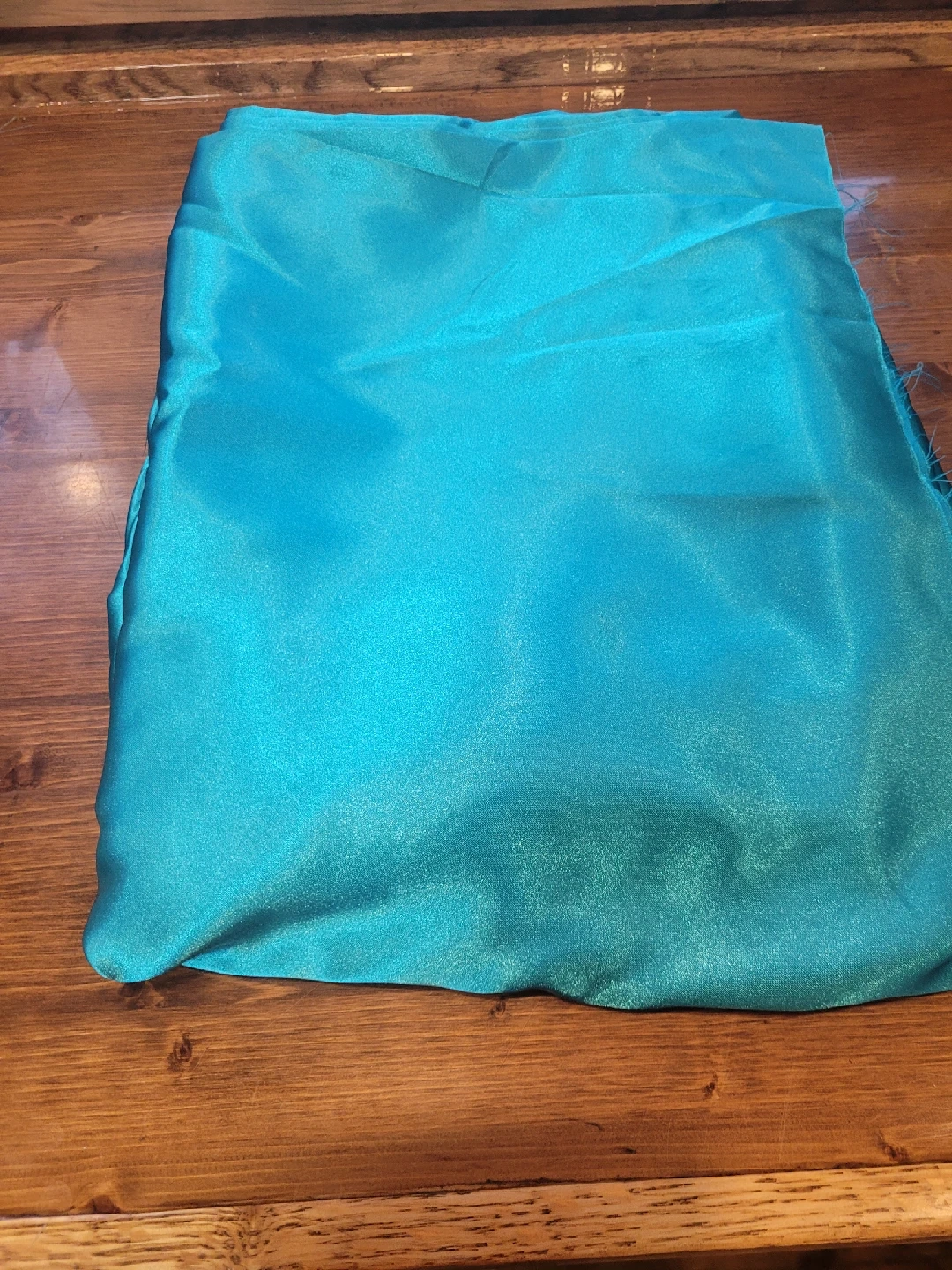 75Selling a piece of teal/peacock Blue coloured fabric! Fabric was for a dress for a wedding, however it wad not used. Would be perfect for a variety of sewing or crafting projects.