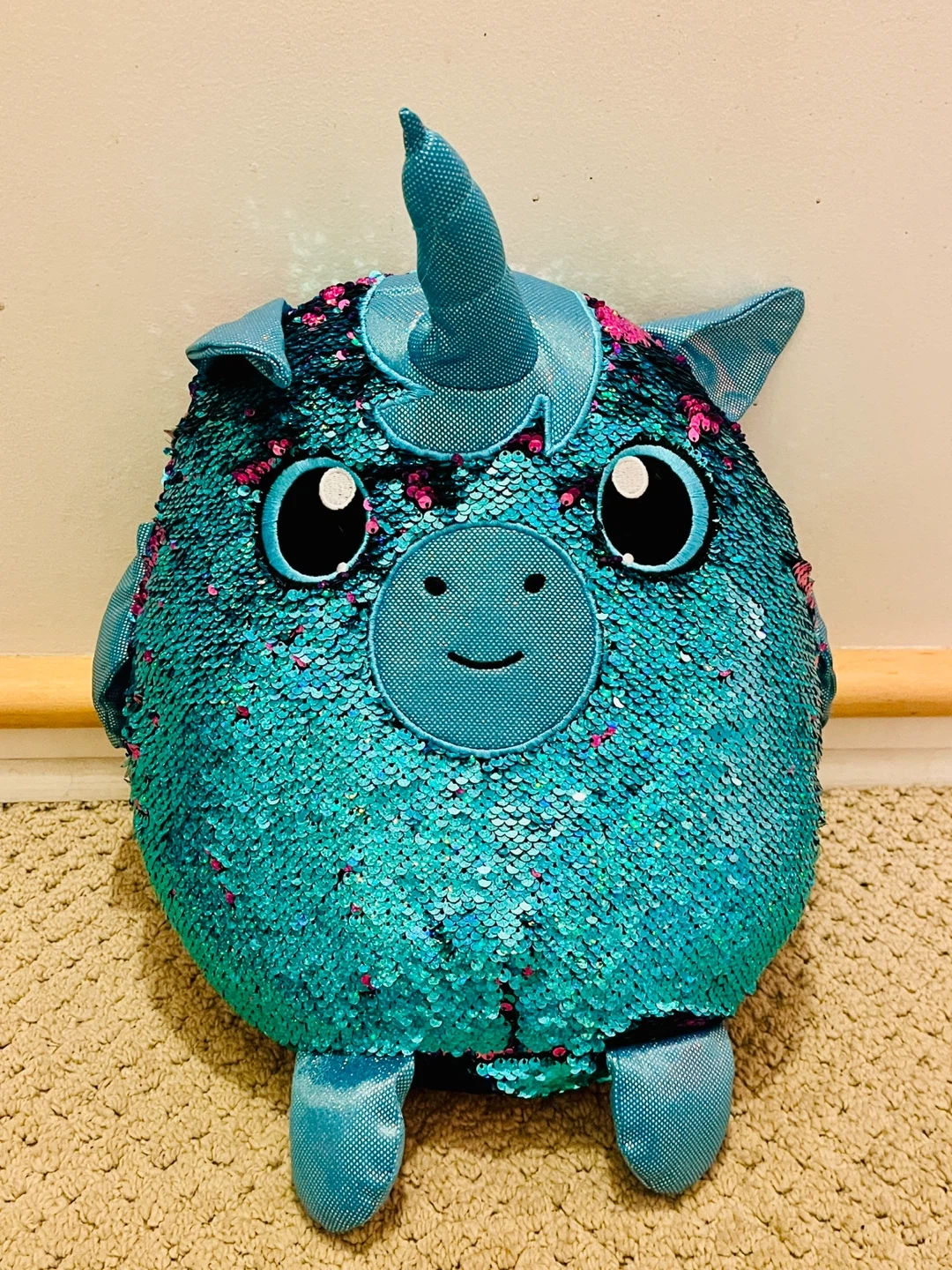 15Super cute teal unicorn pillow plush with reversible sequins! It's in great condition and would be a lovely addition to any room