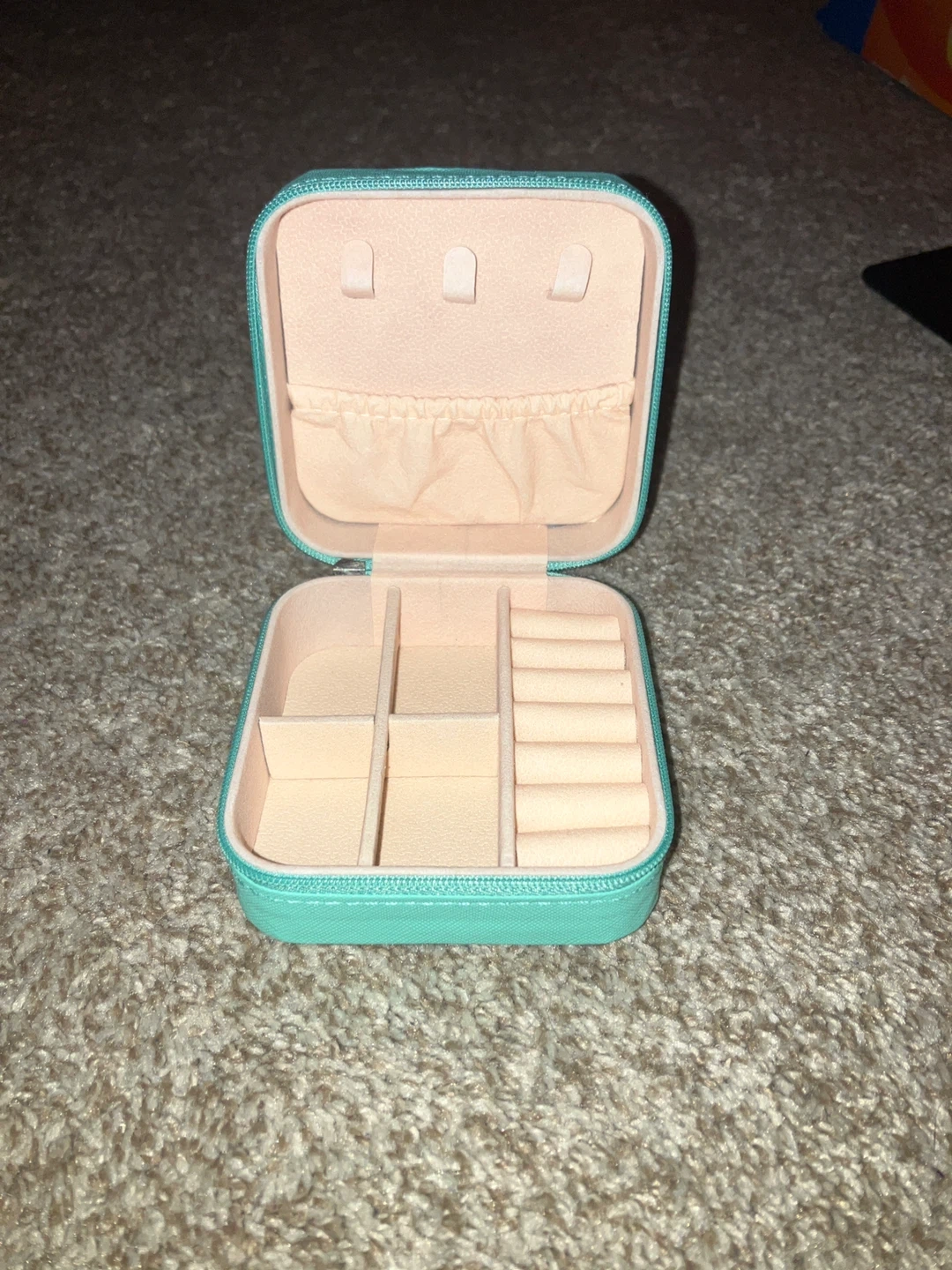 18Here's a cute little teal travel jewelry case! It's perfect for keeping your earrings, rings, and necklaces organized when you're on the go