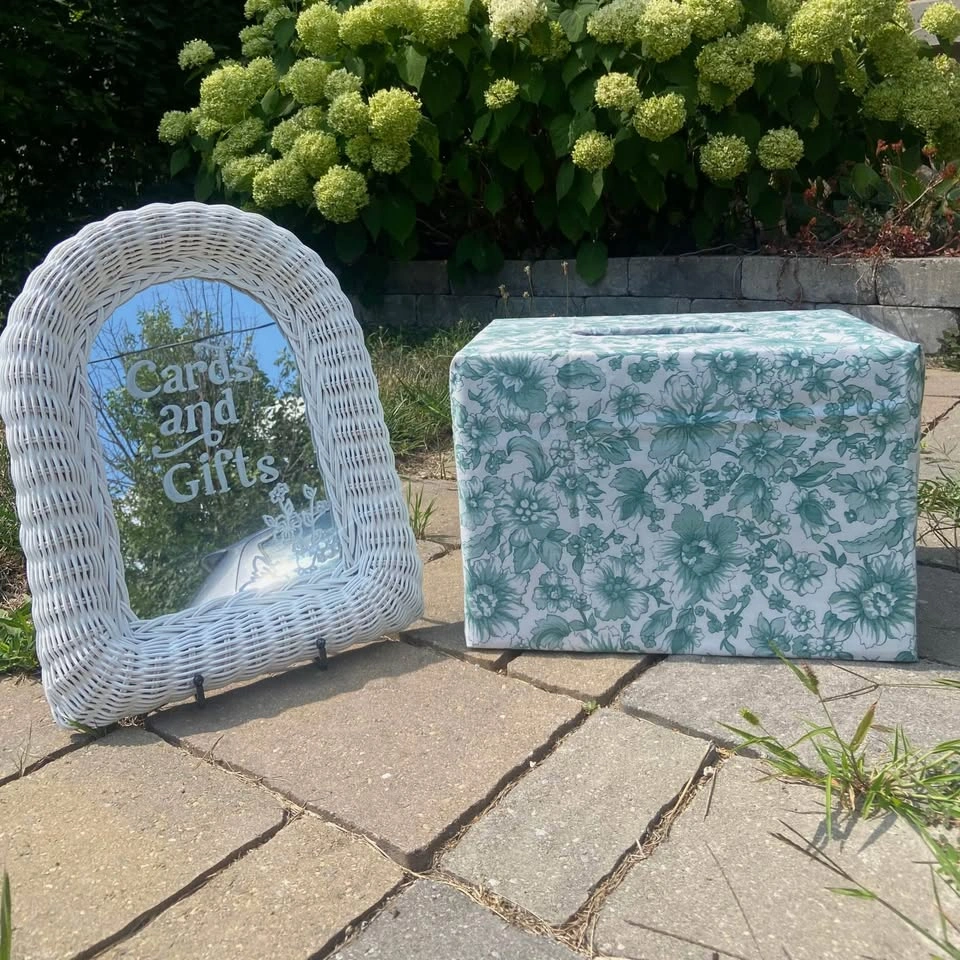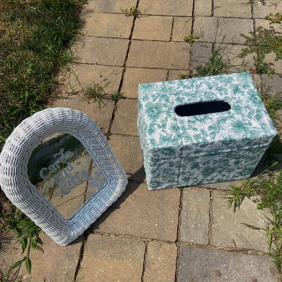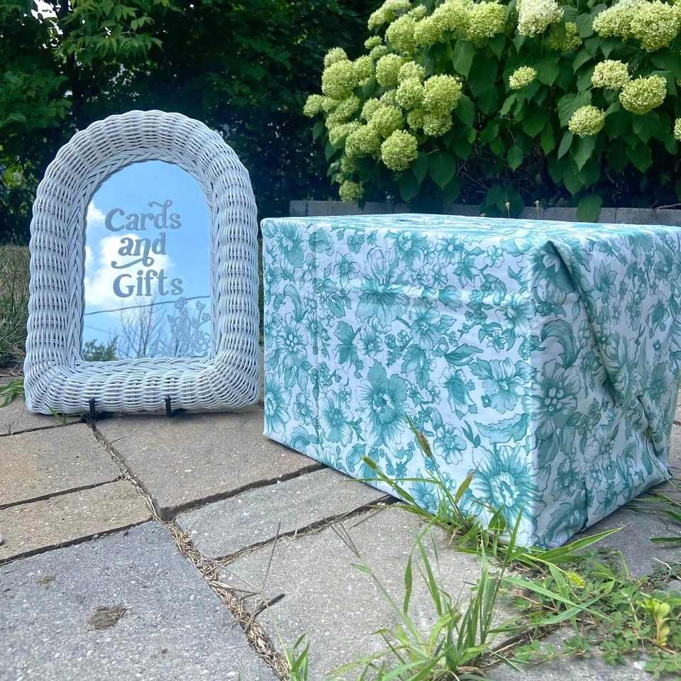 For weddings and showers Box is sturdy and is wrapped in fabric, but can easily be customized with different fabric/materials. It’s a basic brown card box. You can leave it as is, or wrap it in fabric, paper, bedazzle it - it’s a great piece for customizing! The card box is currently sealed in fabric with hot glue - the box within opens on the bottom by sliding the bottom panel out. I intentionally wrapped the fabric over the bottom panel so the box could not easily be tampered with - but it’s up to you if you’d like to remove the wrap or not!