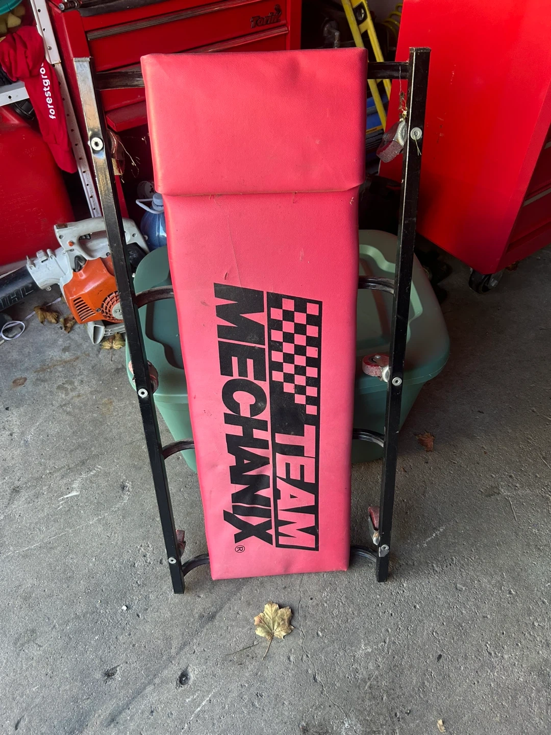 133Selling a Team Mechanix creeper! It's in good condition and perfect for working on your car or other projects. It has a padded seat and a sturdy frame with wheels for easy movement