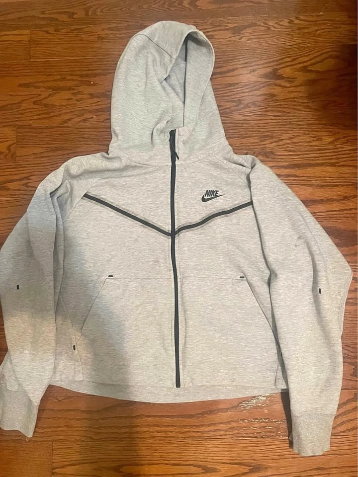 Authentic Nike Tech Fleece girls set in grey. Includes cropped hoodie + matching bottoms. Size Large. Gently used and still in great condition — super comfortable, lightweight, and stylish. Perfect for everyday wear or athleisure fits.