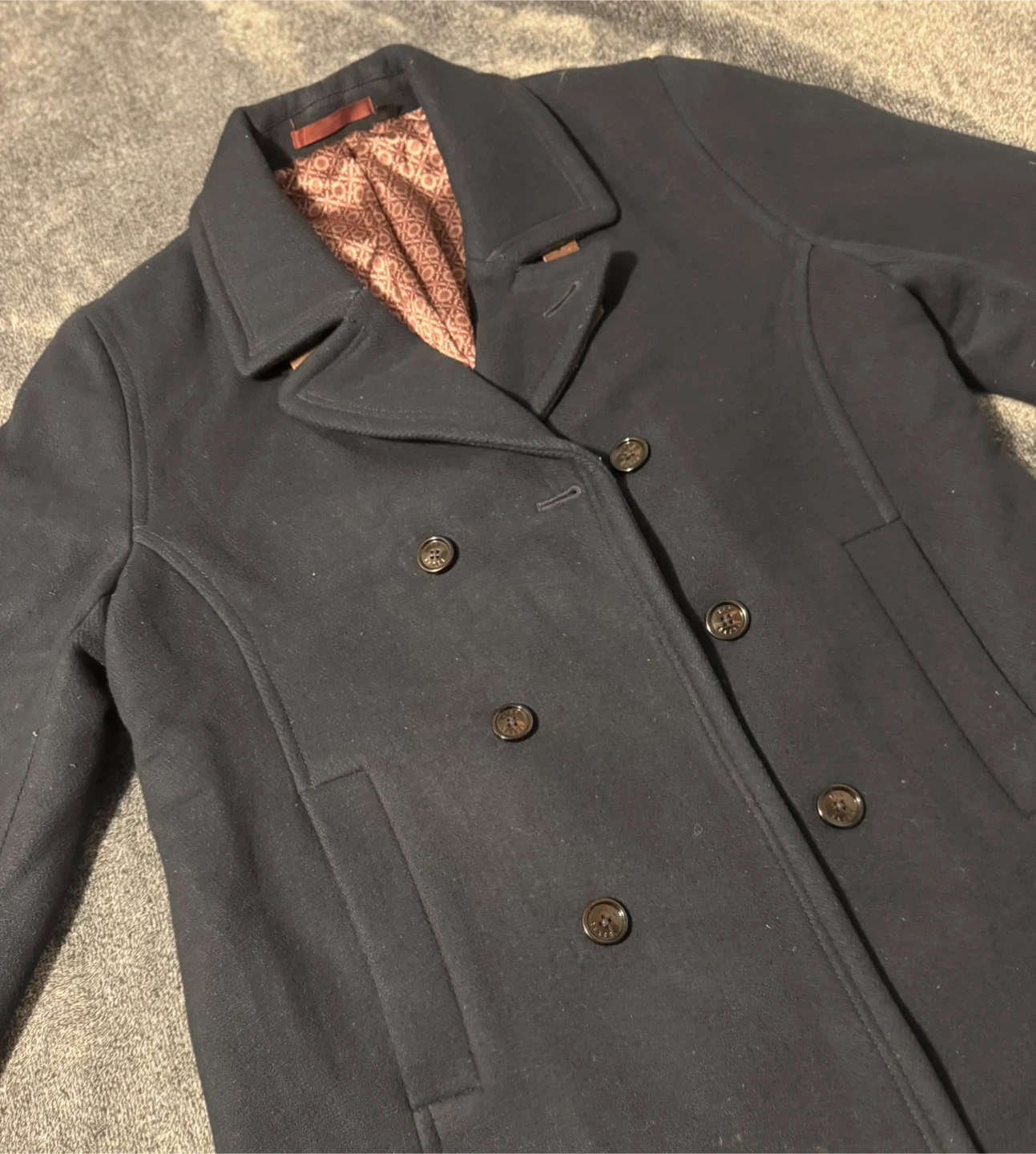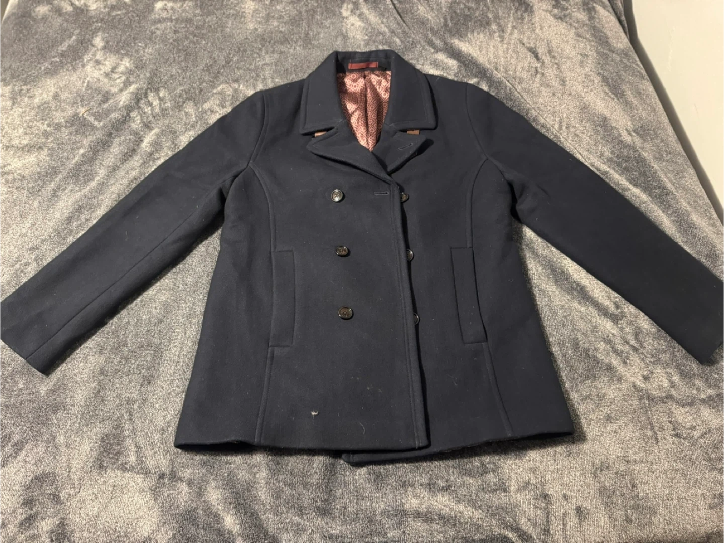 153Selling a Ted Baker London pea coat in great condition. It's a size 5. The coat is a navy blue colour with a patterned lining. Perfect for fall or winter weather!