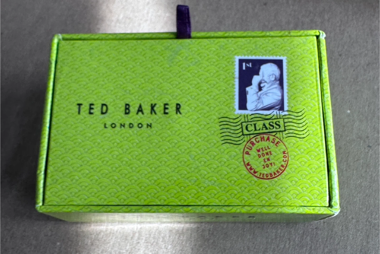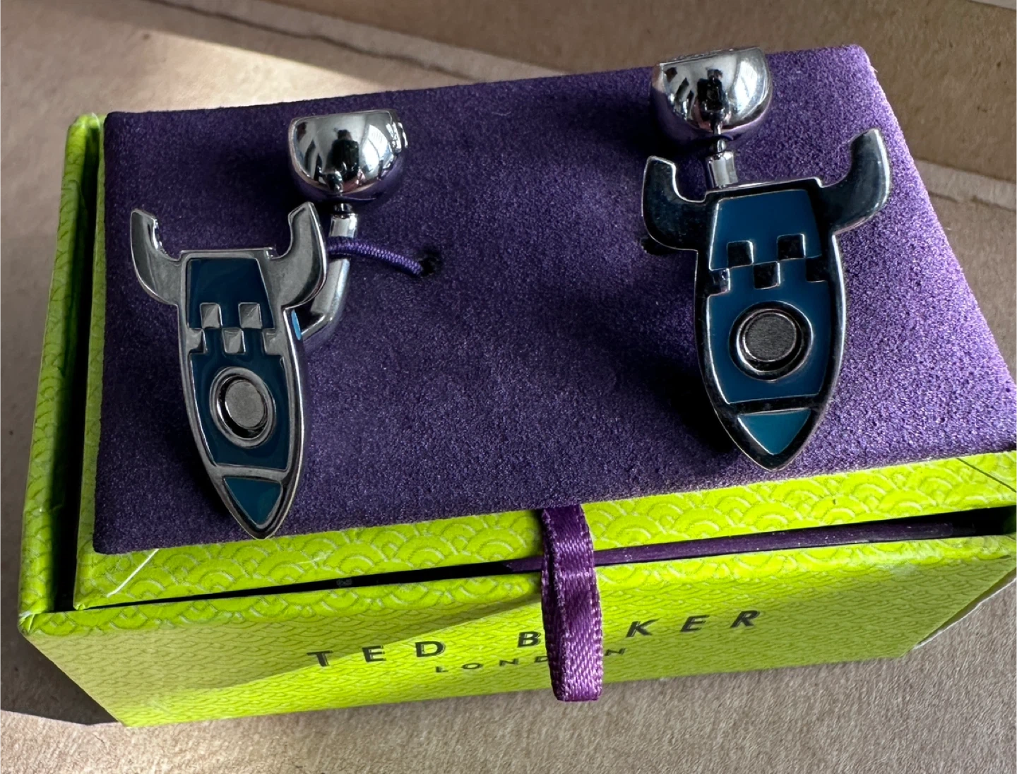 These Ted Baker stylish cufflinks come in their original box! They feature a silver and green rocket ship.