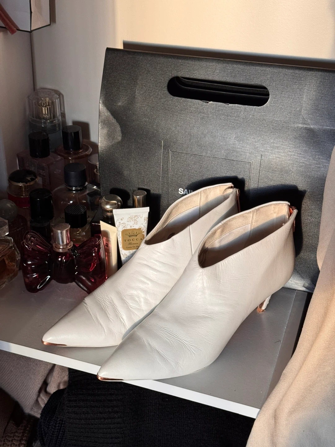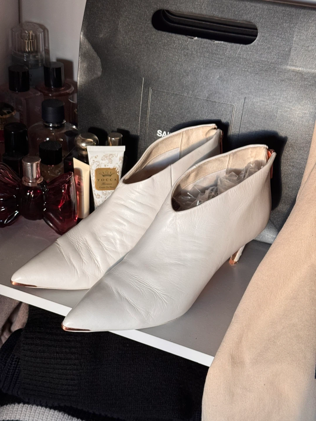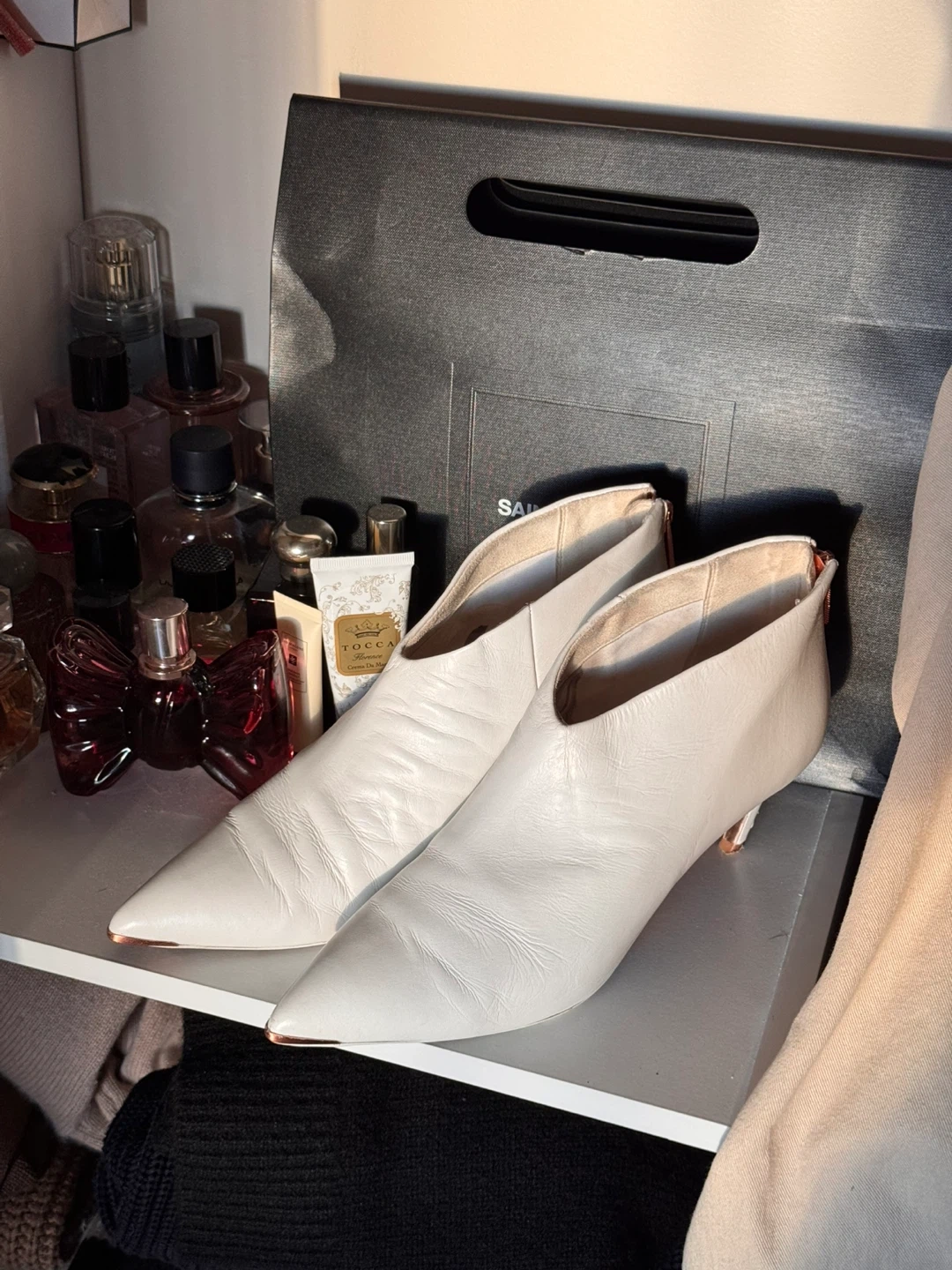 Selling a pair of Ted baker white leather boot. They are in great condition. The soles show some wear, but the uppers are in great shape. Perfect for adding a touch of class to any outfit!