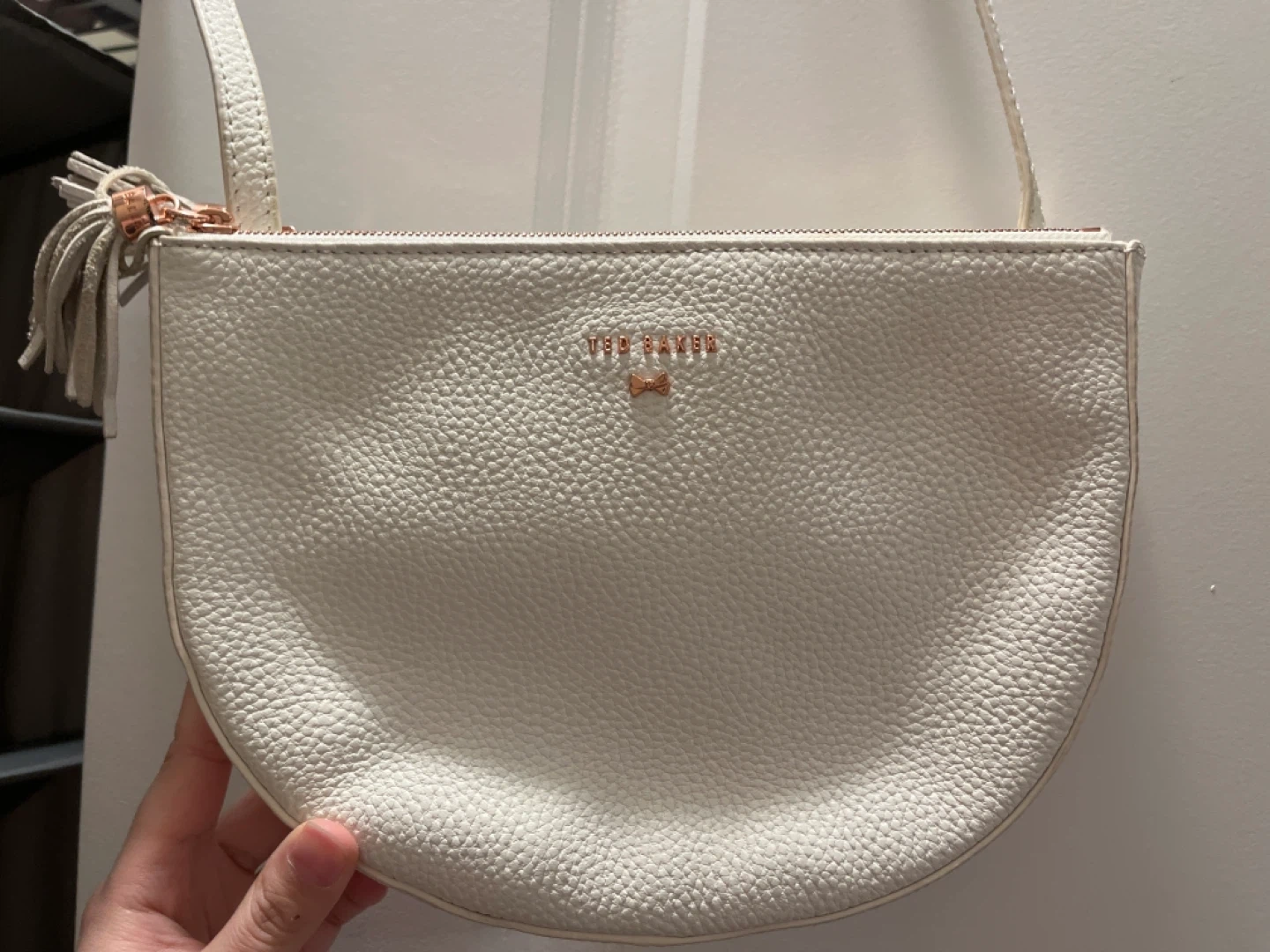 Selling a cute Ted Baker crossbody bag in white! It's in great condition and perfect for everyday use. The bag features a lovely textured leather and a stylish design. Feel free to ask any questions!