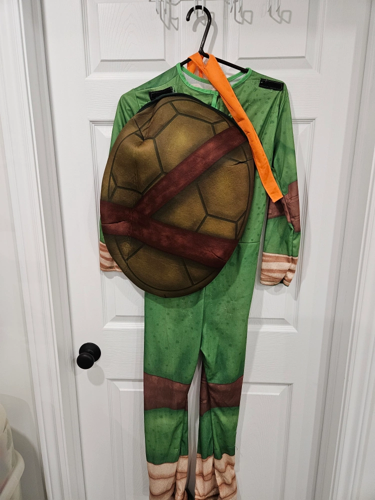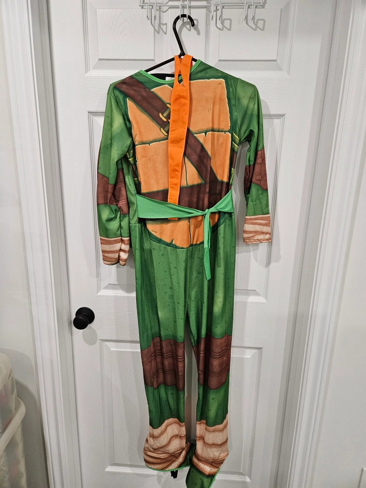 25Get ready to fight crime with this Teenage Mutant Ninja Turtle costume! It is youth large size and includes the jumpsuit and the turtle shell. Perfect for Halloween or dress-up play.