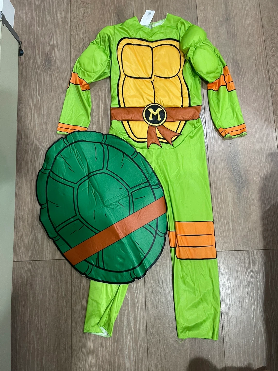 91Get ready to fight crime with this awesome Teenage Mutant Ninja Turtles costume! It includes the full outfit and the turtle shell. Perfect for Halloween or dress-up fun Used once. And like new Size 7-8 years old
