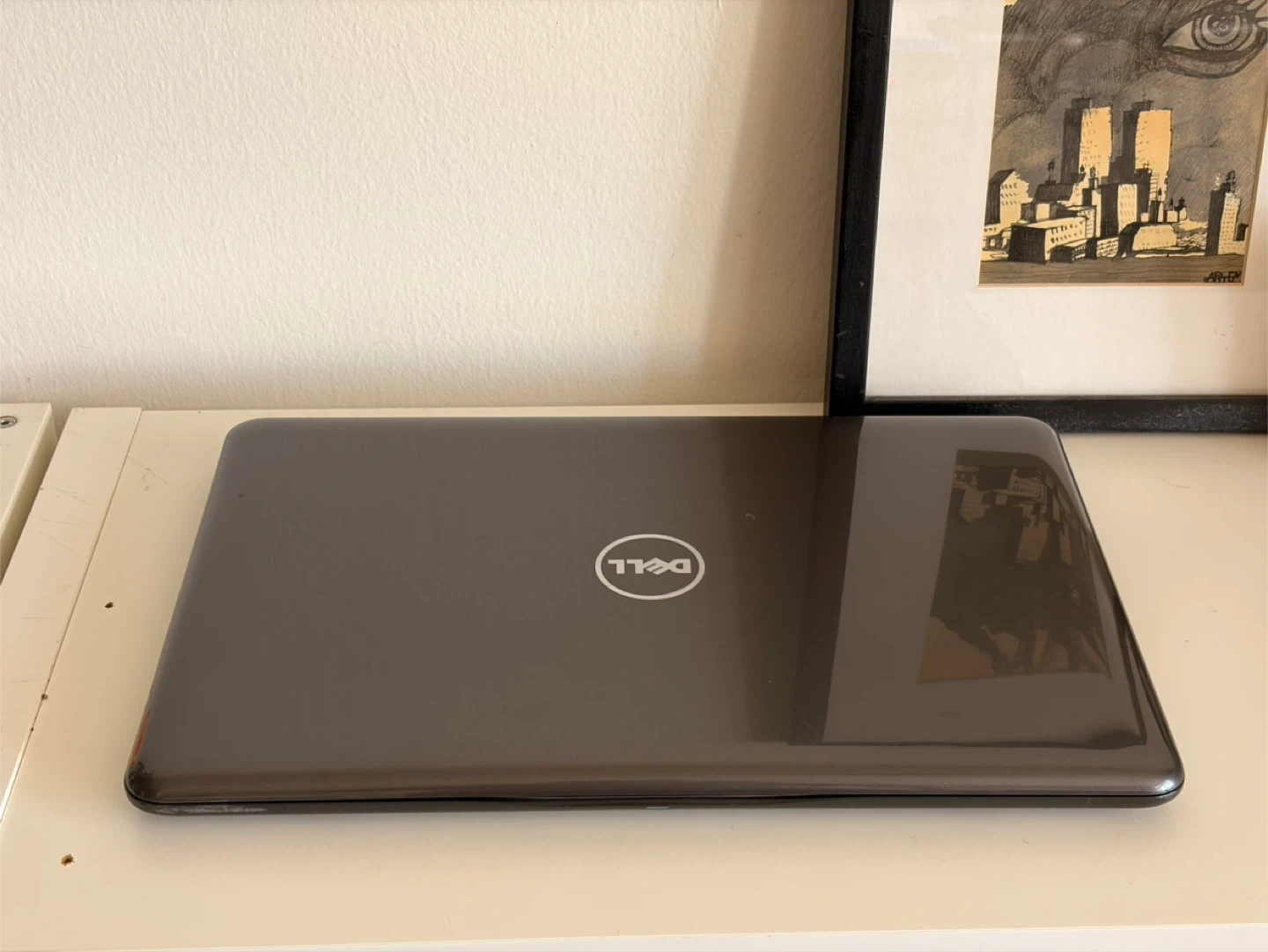 Used large Dell laptop. It's a functional computer with a standard keyboard and trackpad. The screen displays the Dell logo. Includes multiple USB ports for connectivity. Great for everyday tasks!