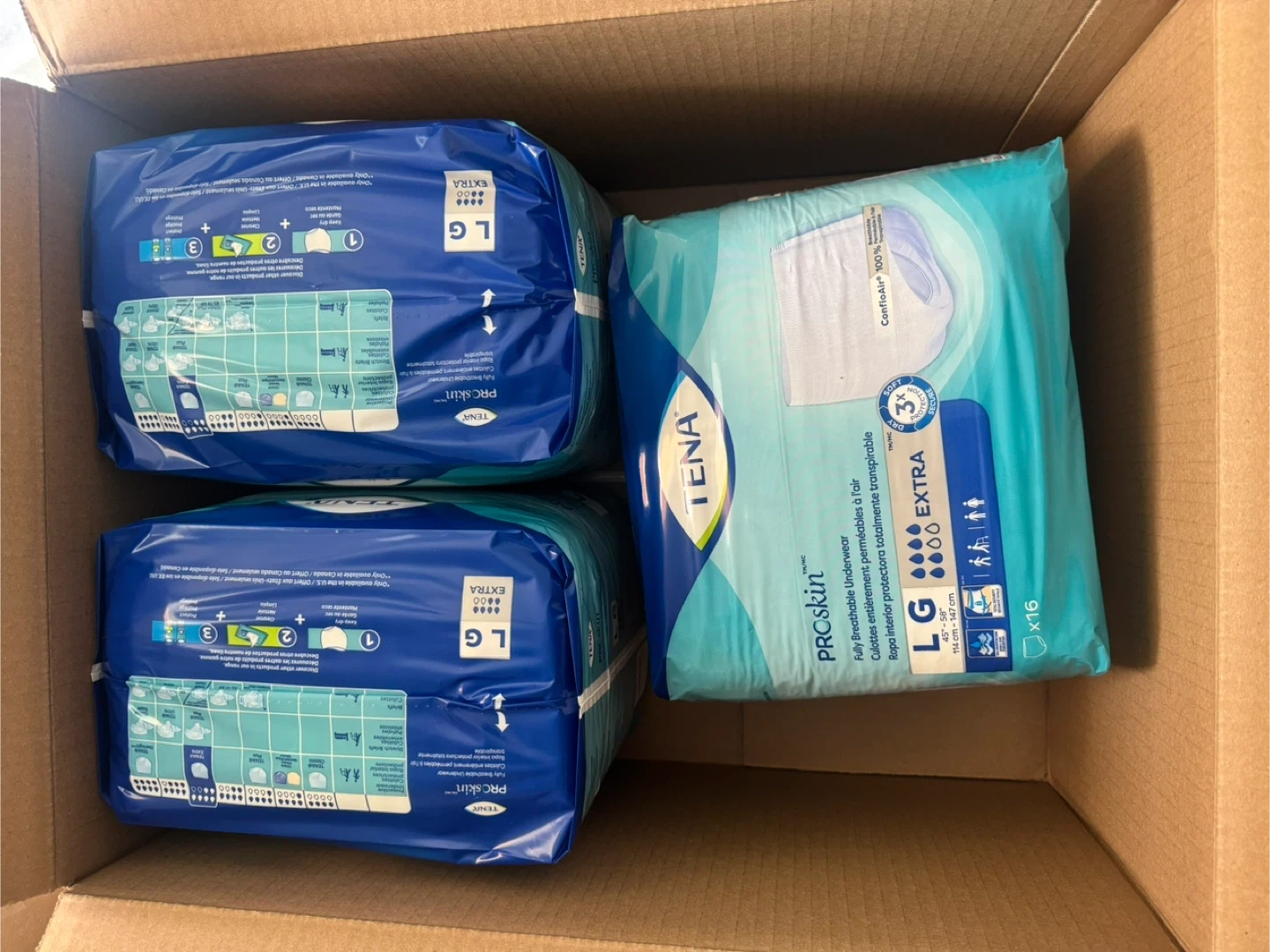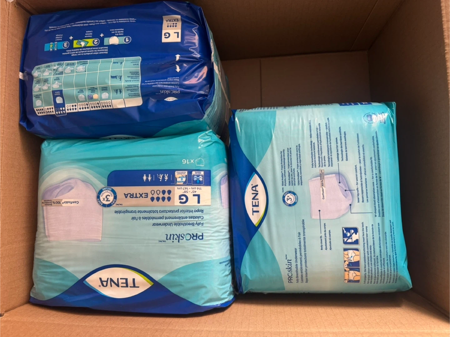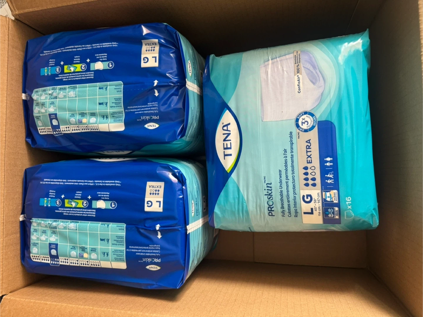 54TENA ProSkin incontinence underwear in size Medium and large. They are fully breathable and dermatologically tested to be skin-friendly. There are both the EXTRA and the regular ProSkin versions available. Perfect for comfortable and reliable protection! $12 a package. 📦 has for package
