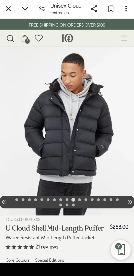 Tentree U Cloud Mid-Length Puffer Winter Jacket Size XL Men's fit (Jackets are unisex but this fits like a men's XL - see sizing chart) Brand new with tags Colour Urban Green Original retail $268