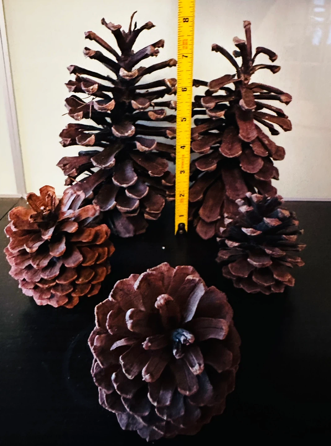 Lot of natural pine cones, varying in size. The largest cone measures approximately 8 inches long. Great for crafting and seasonal decor!