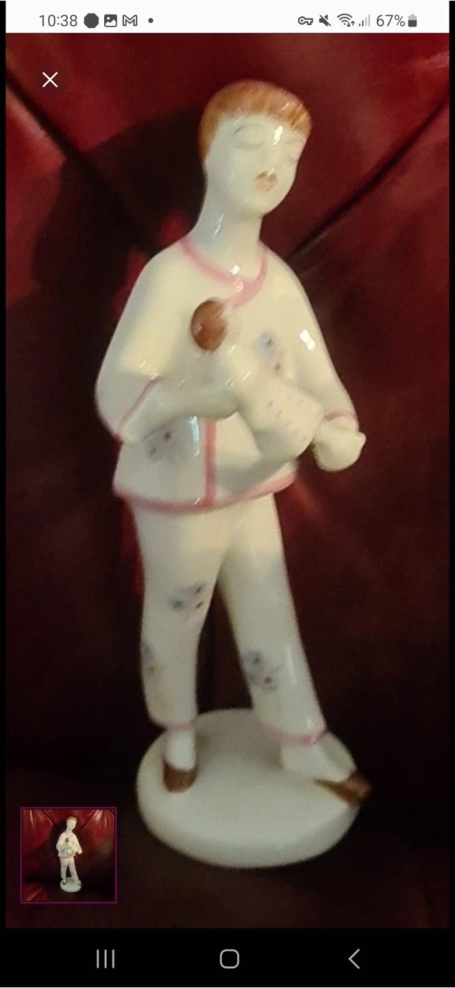 This is a mid-century porcelain rare vintage figurine titled "Girl With Her Doll" produced by the Hollóházi factory in Hungary