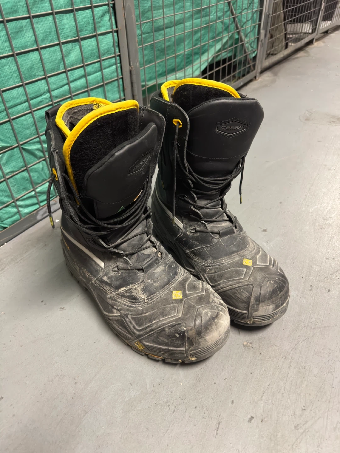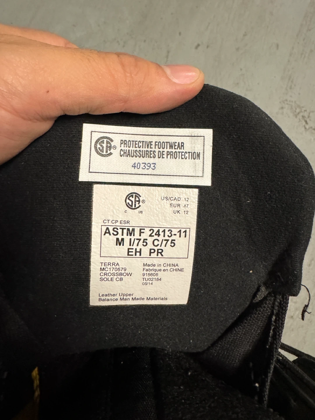 99Terra Crossbow work boots, in US men's size 12. They are designed as protective footwear with the code 40393. The boots conform to ASTM F 2413-11 M I/75 C/75 EH PR standards. Very very good for cold weather!! Used once but not what i needed. been storing them but i dont think ill ever use them again. Bought them for $375 Selling for $120