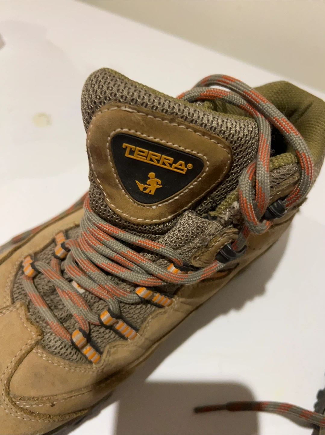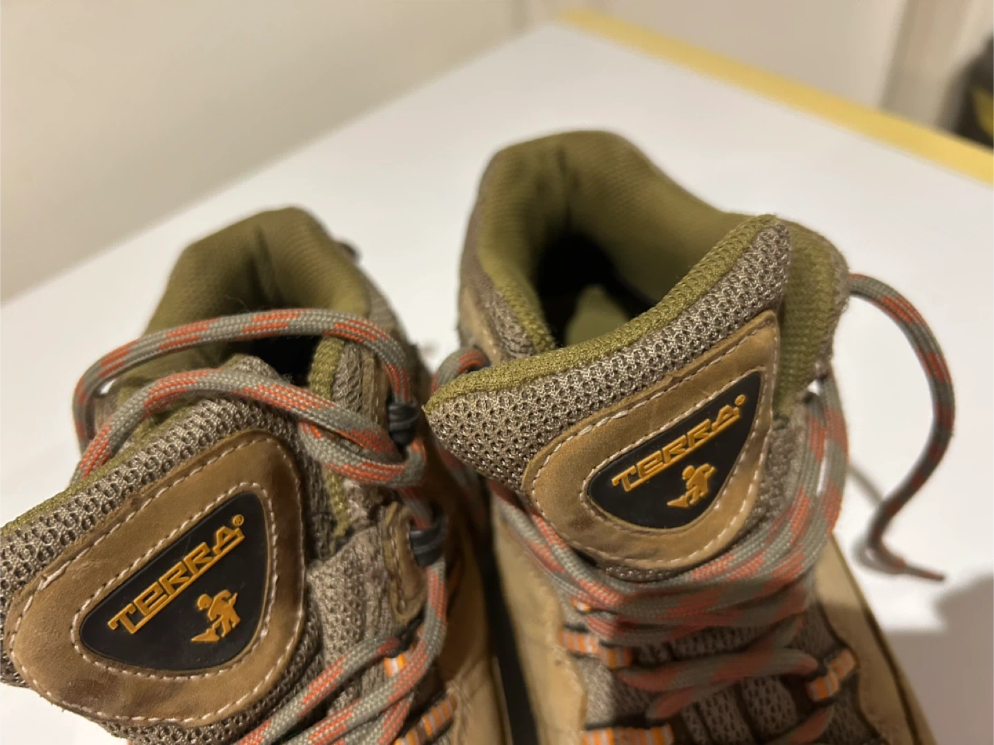 Terra hiking boots in good condition! Great for hitting the trails or just getting around town. They've got some wear, but still have lots of life left in them