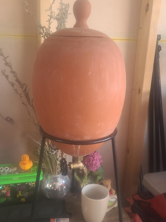 Selling a terracotta structured liquid dispenser, perfect for keeping your water cool naturally! It comes with a stand and a spigot for easy dispensing. It's in good condition and ready to use in your home. contact for more into on structured liquids