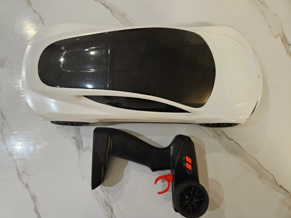 Selling a Tesla Hot Wheels RC car in white! It comes with the remote control. Great for some fun!