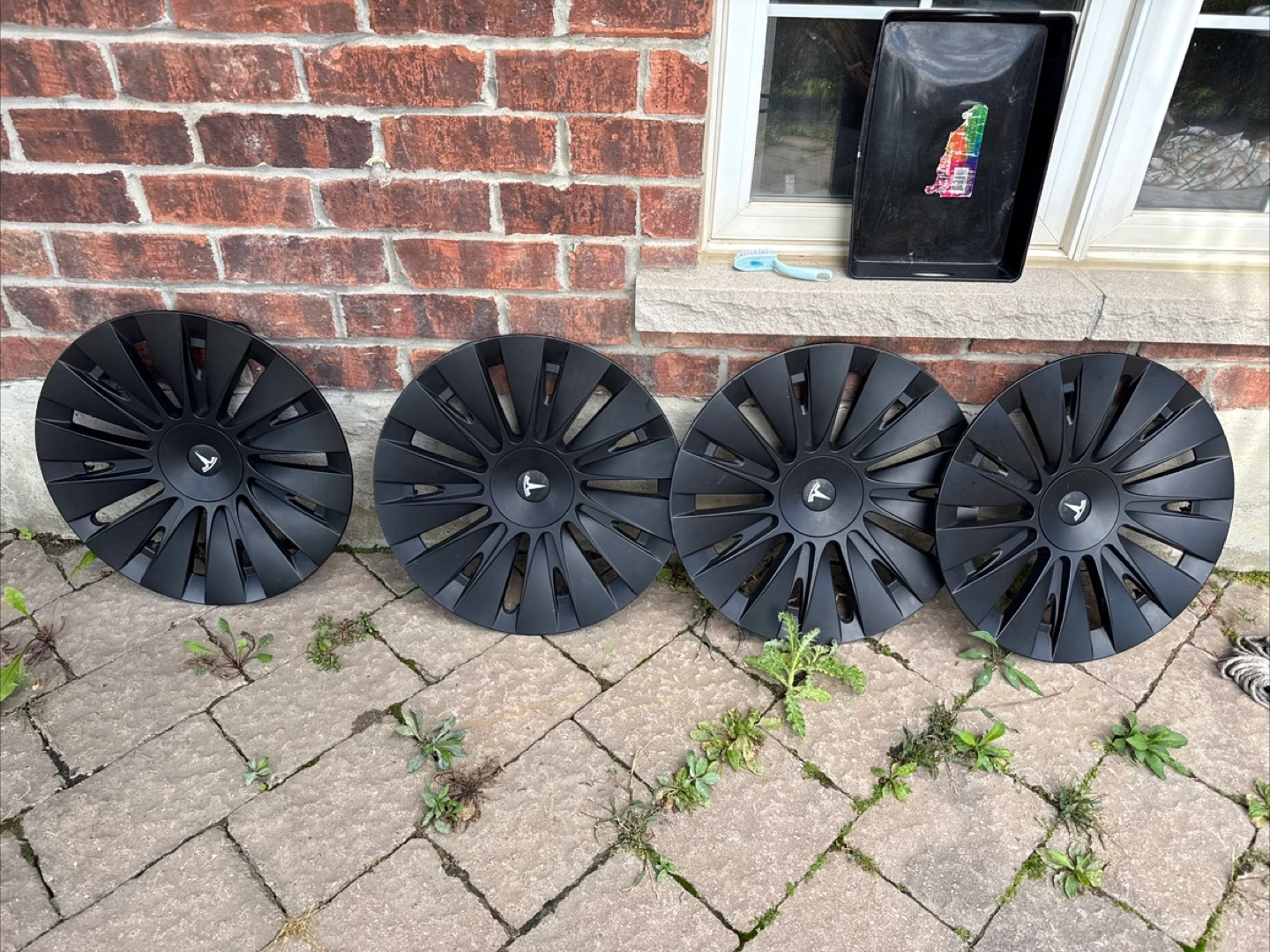 Selling a set of 4 Tesla Model 3 wheel covers. They are in good condition and ready to give your car a sleek new look! One cover has one broken clip