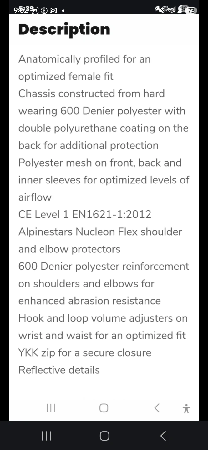 Anatomically profiled for an optimized female fit, this jacket is constructed from hard-wearing 600 Denier polyester. It features double polyurethane coating on the back for additional protection and polyester mesh on the front, back, and inner sleeves for optimized airflow. CE Level 1 EN1621-1:2012 Alpinestars Nucleon Flex shoulder and elbow protectors offer enhanced abrasion resistance. Hook and loop volume adjusters on the wrist and waist ensure an optimized fit, complemented by a YKK zip for secure closure and reflective details. This jacket is designed for riders who need protection and comfort. Size small.
