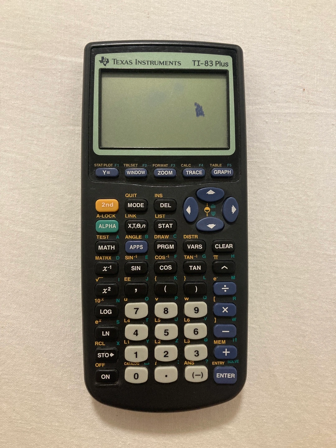 137Selling a Texas Instruments TI-83 Plus calculator. Perfect for students or anyone needing a reliable graphing calculator! Calculator is in good condition, however, there is no cover lid.