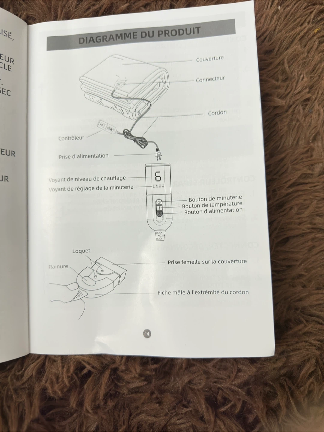 10Selling a Texciting Luxurious Plush Heated Blanket. It comes with the original box and includes the blanket and controller. The controller model is T-62*X84"(157X213CM) and F:72*X84"(182X213CM). This blanket features 9-setting digital controller and provides cool temperatures. It is machine washable and dryer safe, and has a ETL Certified Safe 2-4-10 hour automatic shut-off feature