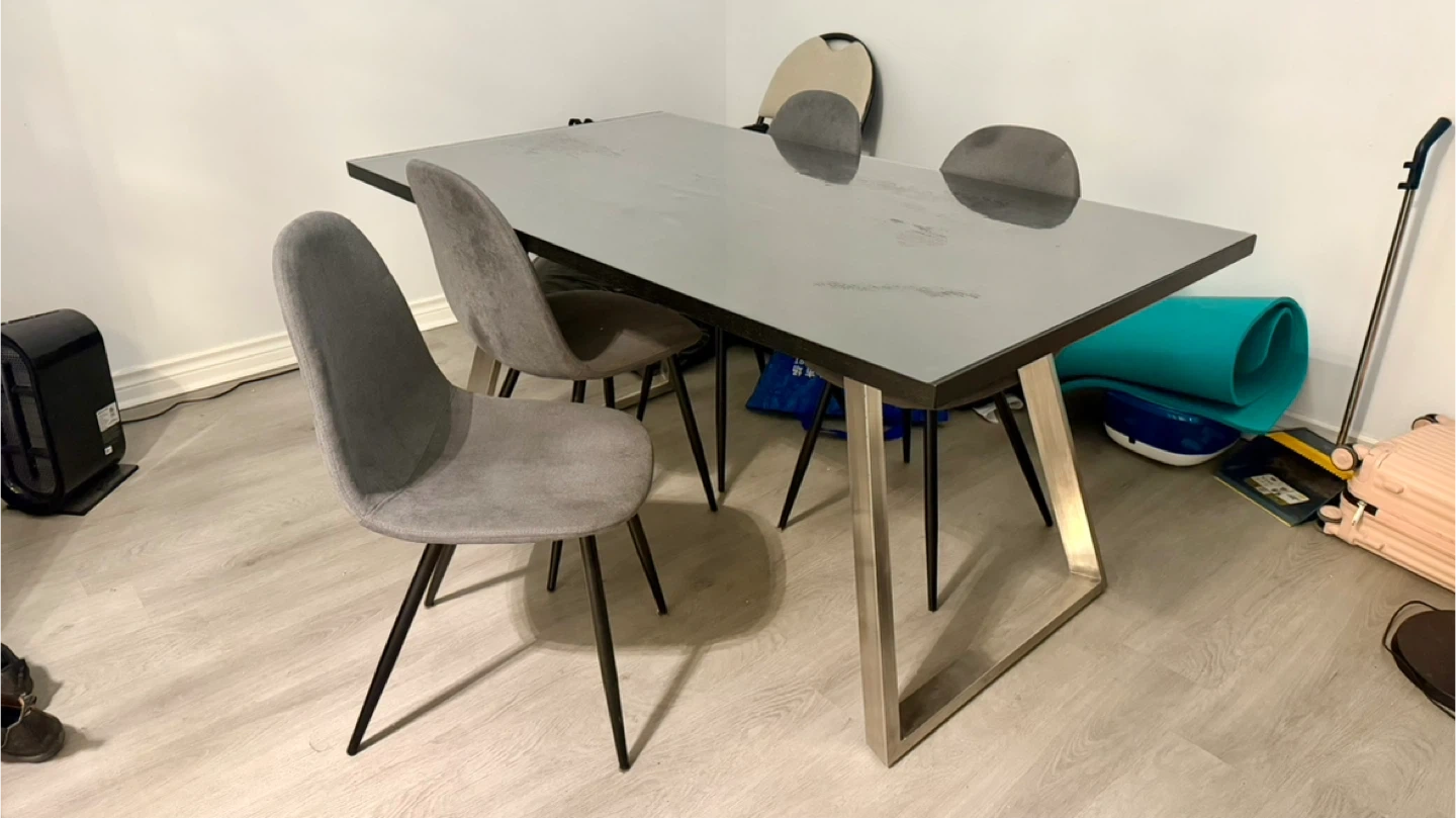 Modern Dining Table with Grey Upholstered Chairs