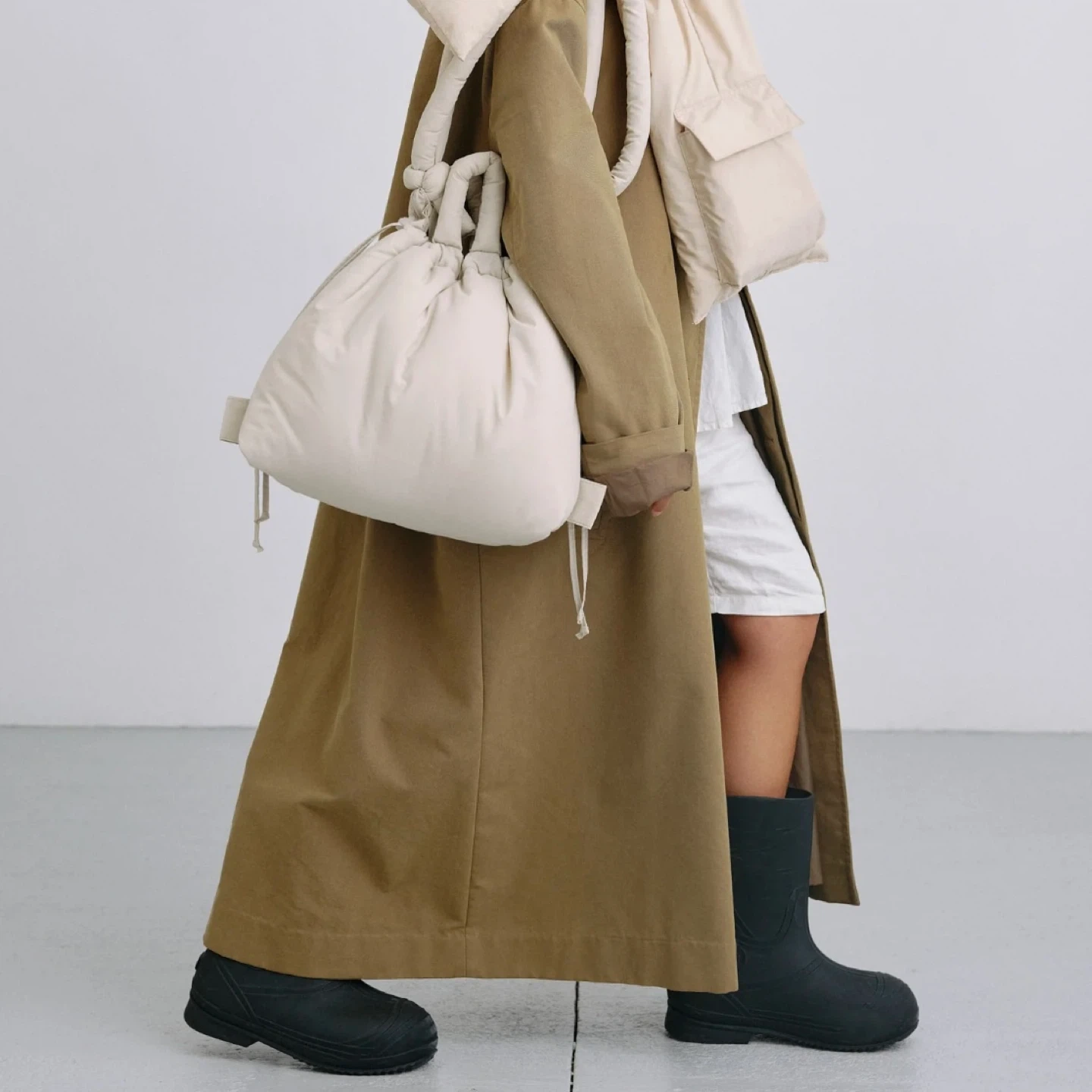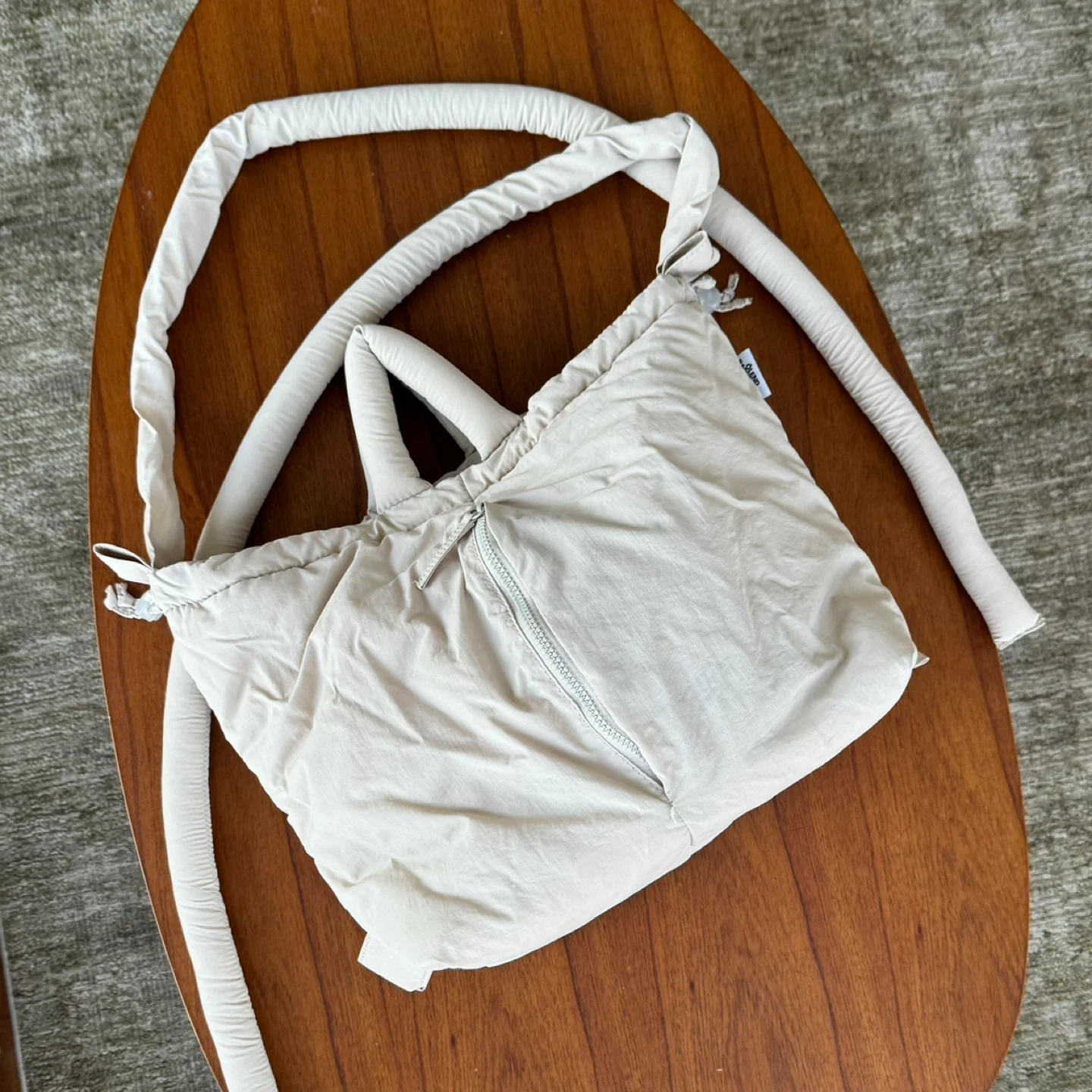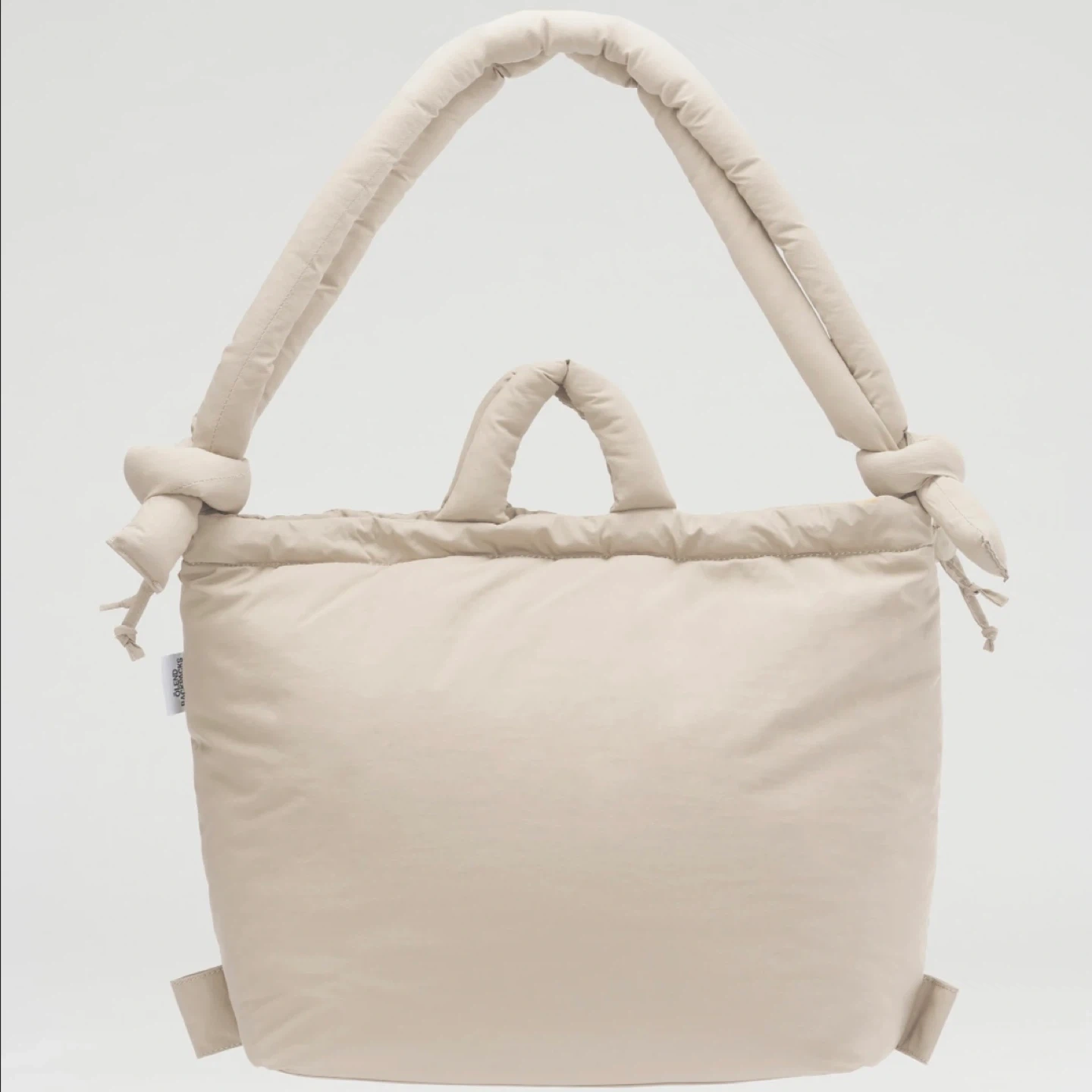 Ölend Ona bag in color sand. Soft, versatile and compatible with laptops up to 17". Water-resistant light nylon & convertible straps.