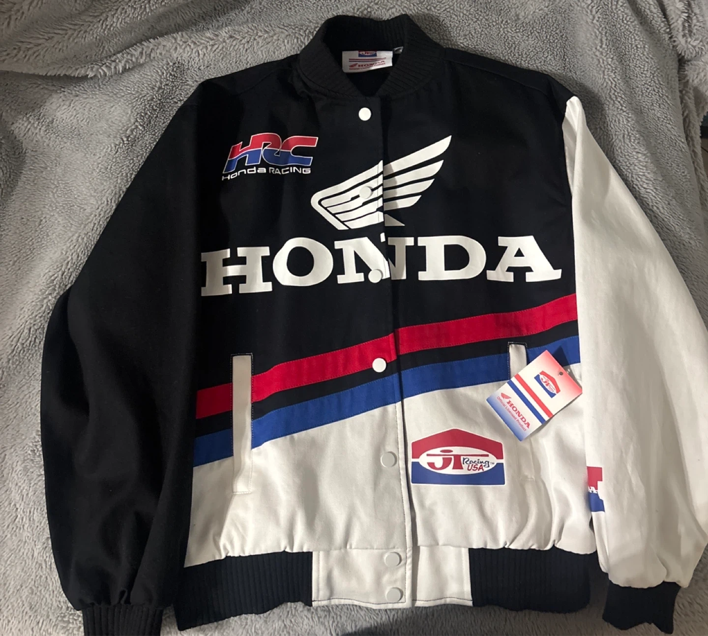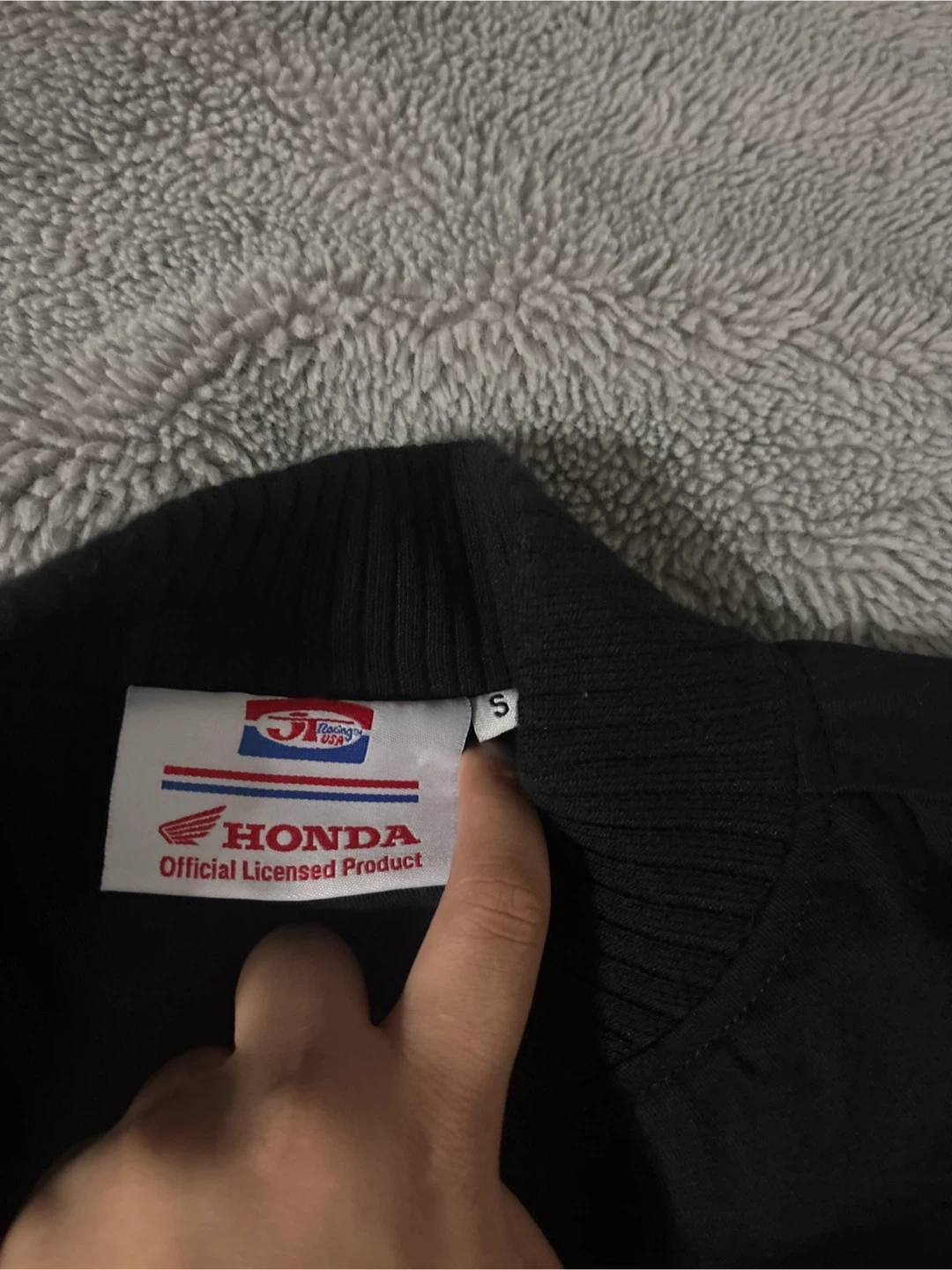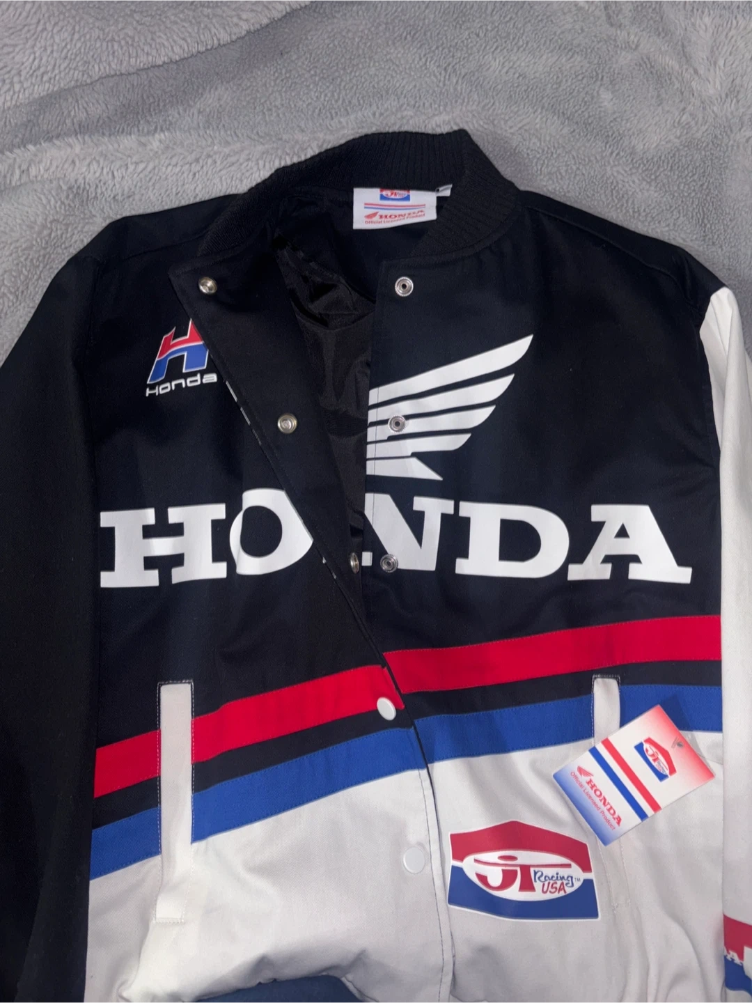 This is a Honda Racing USA jacket is officially licensed. It's a size small and features the iconic Honda wing logo. Perfect for any racing fan!