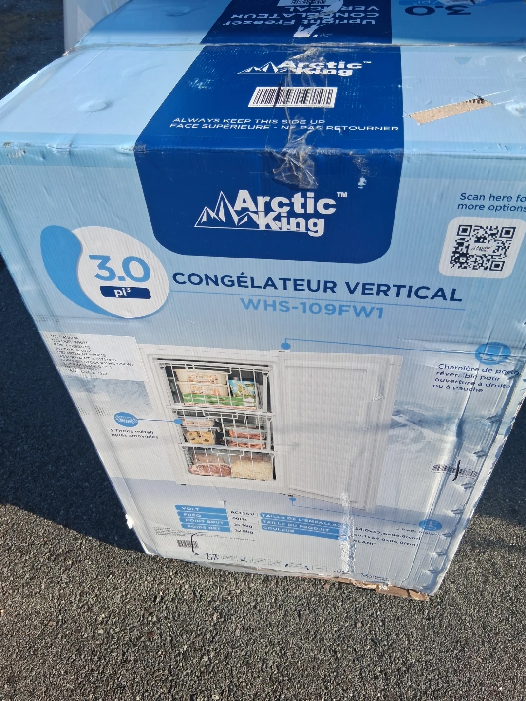 Selling a brand new Arctic King 3.0 cu ft Upright Freezer! It's still in the box and ready to keep your food frozen. This compact freezer is perfect for small spaces and offers convenient storage. Get yours today!