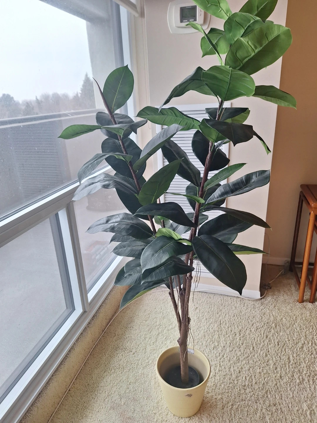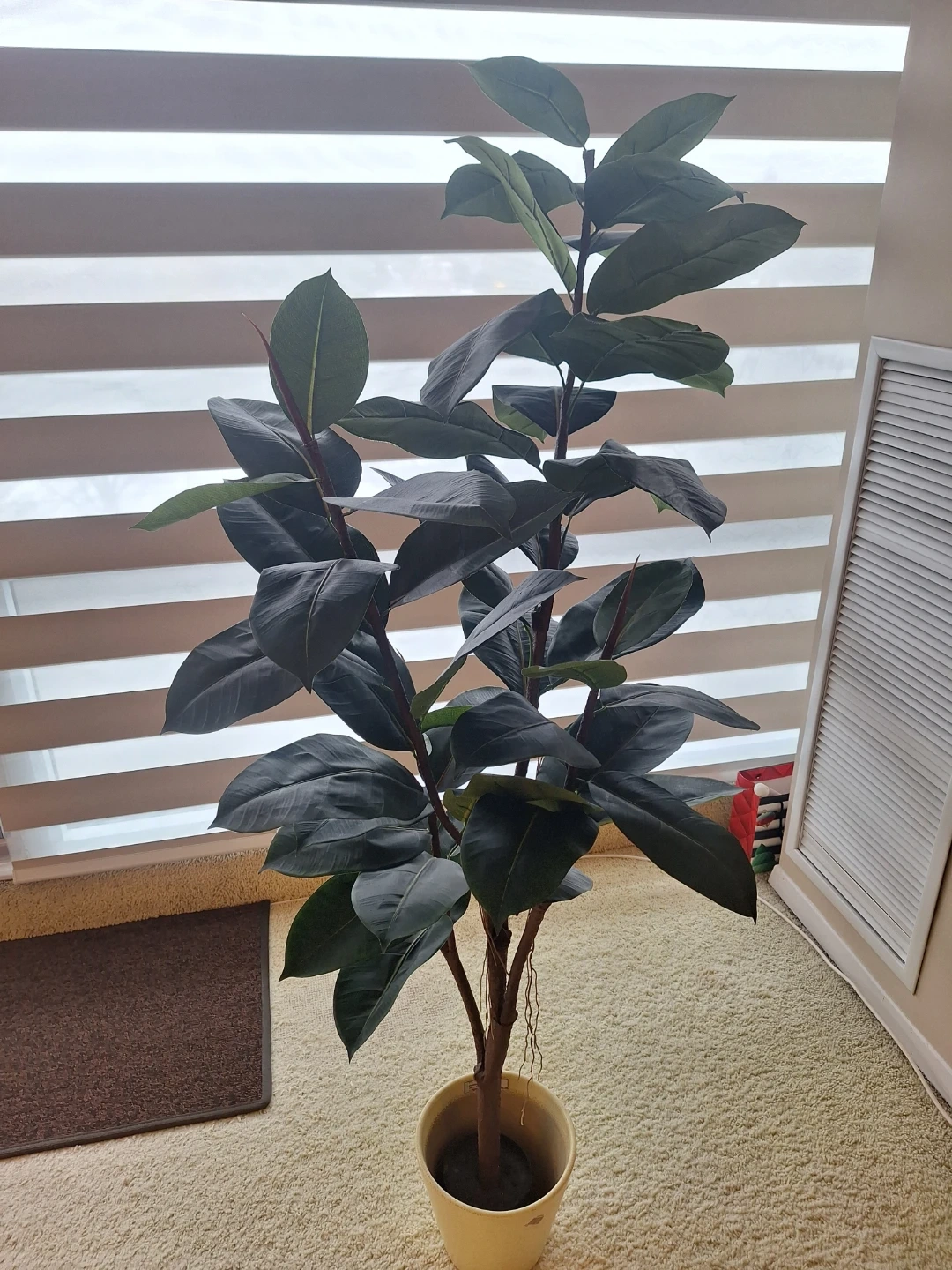 Artificial Ficus Elastica (Rubber Tree) plant, selling with pot. Used for a few weeks for staging an open house only. APPROXIMATELY 62 inches tall.