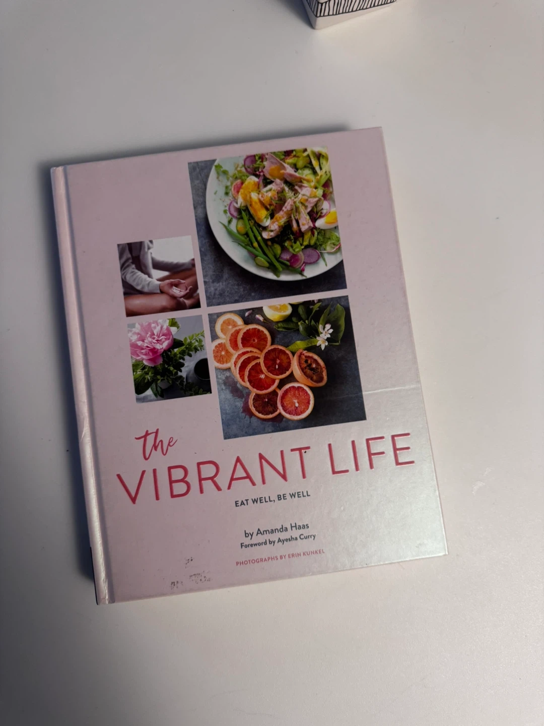 This cookbook focuses on vibrant recipes for a well-lived life. It contains over 60 clean recipes for revitalizing routines and self-care practices. The book is by Amanda Haas and includes photographs by Erin Kuhel.