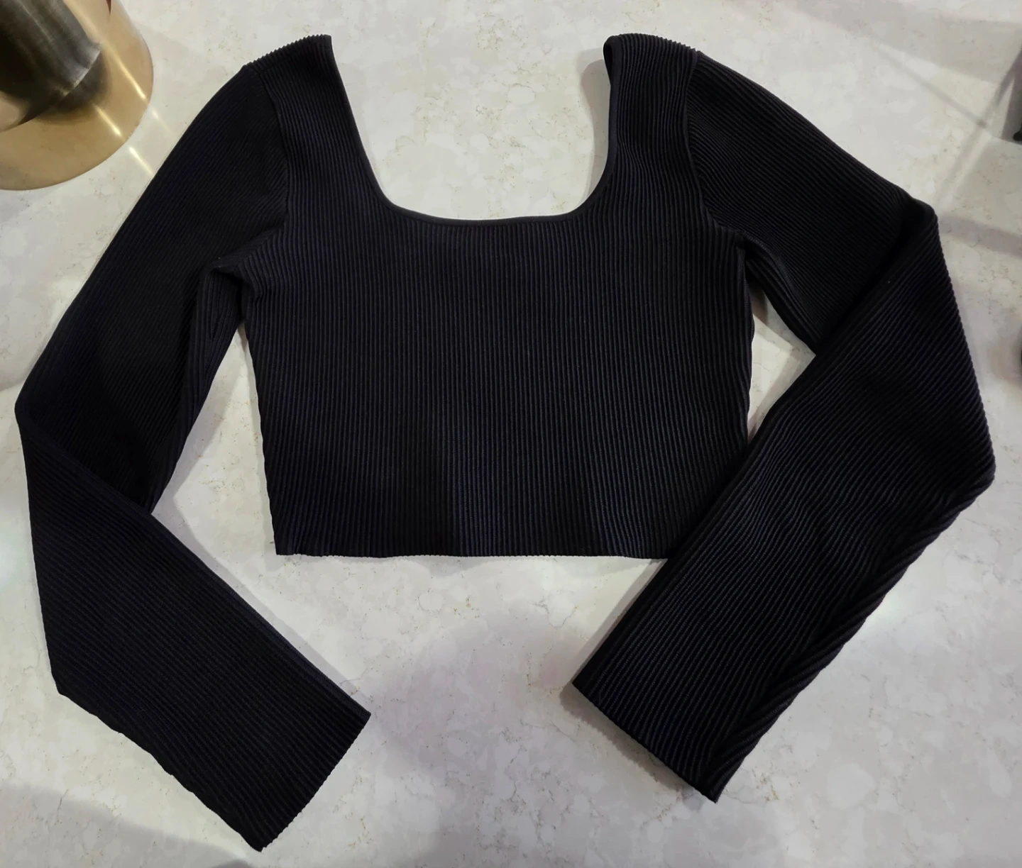 Selling a stylish black long sleeve top from Babaton. It's a size L and a but cropped. Perfect for layering or wearing on its own!