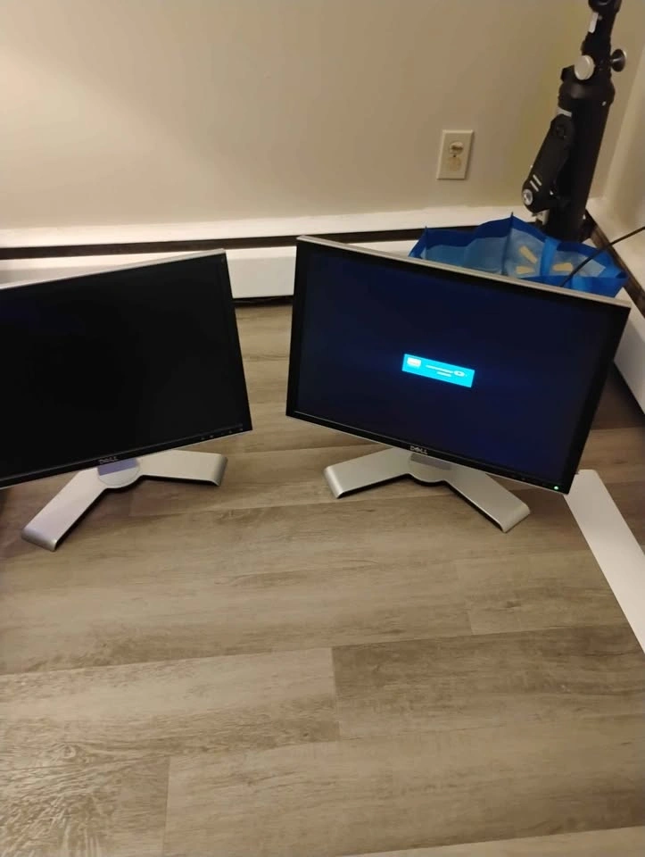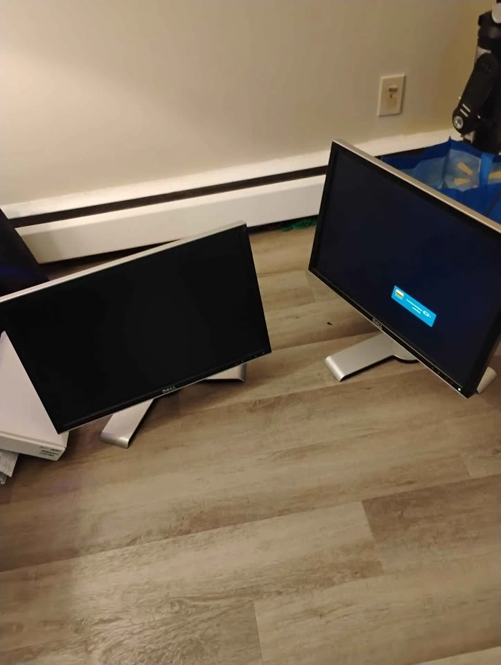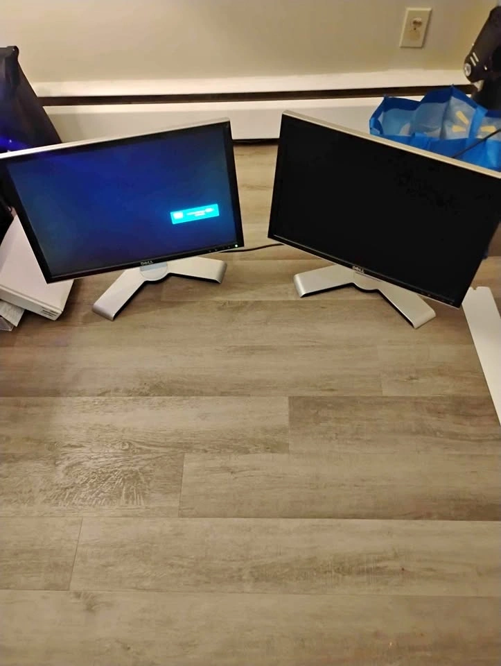 Functional Dell monitors, both with stands. Good for a dual screen setup. They both move up and down and turn left and right with 4 built-in USB hubs. Both cords are included. They both work and have a great picture. $25 each. Can be used as TVs with a simple USB stick.