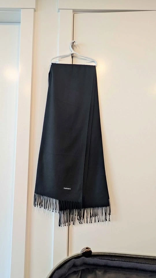 This is a beautiful cashmere stole, perfect for adding a touch of luxury to any outfit. It's incredibly soft and warm, making it ideal for cooler evenings or as an elegant accessory. The color is a versatile neutral that pairs well with many clothing styles.