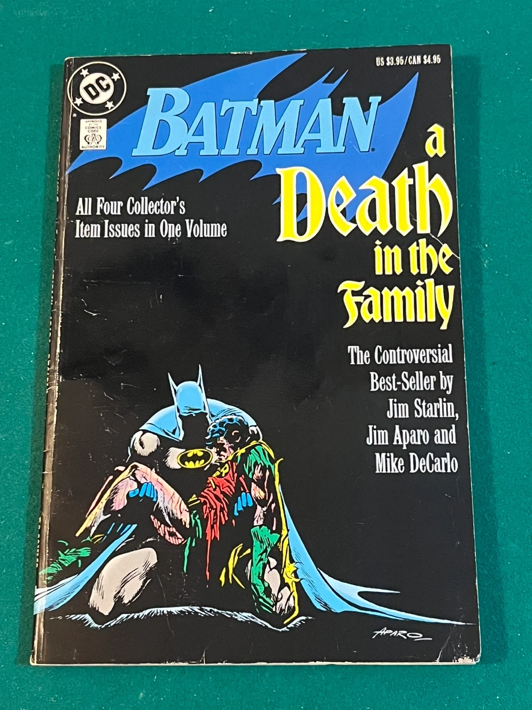 This graphic novel collects all four collector's item issues of Batman: A Death in the Family in one volume. Fourth Print.